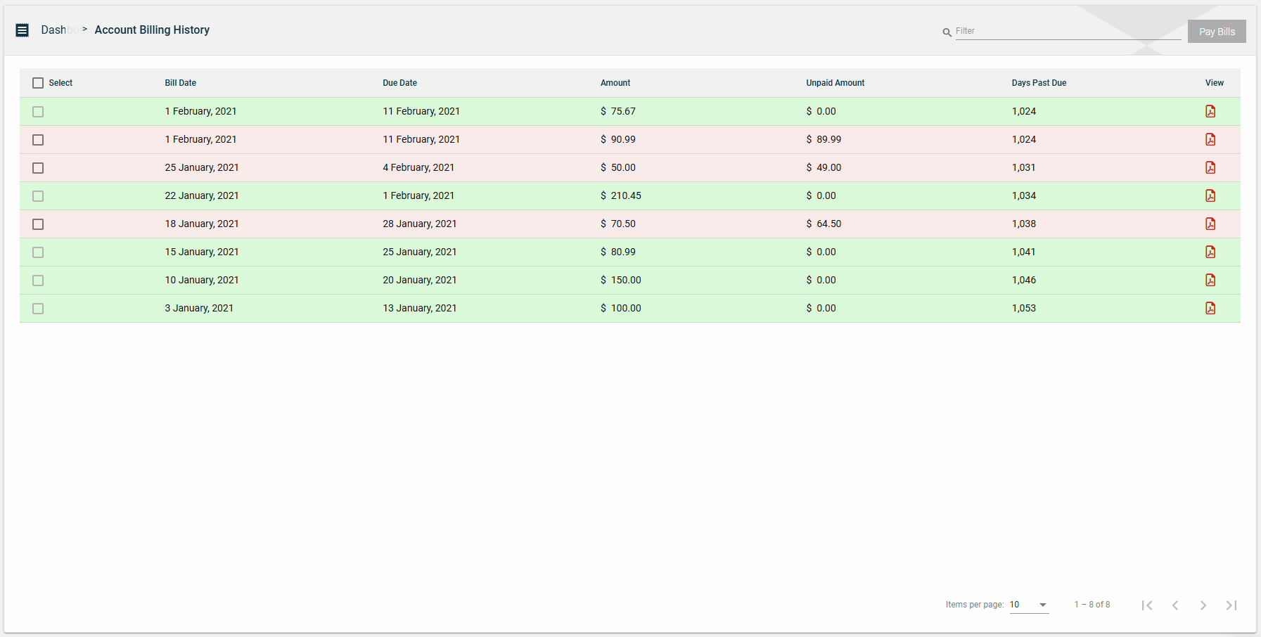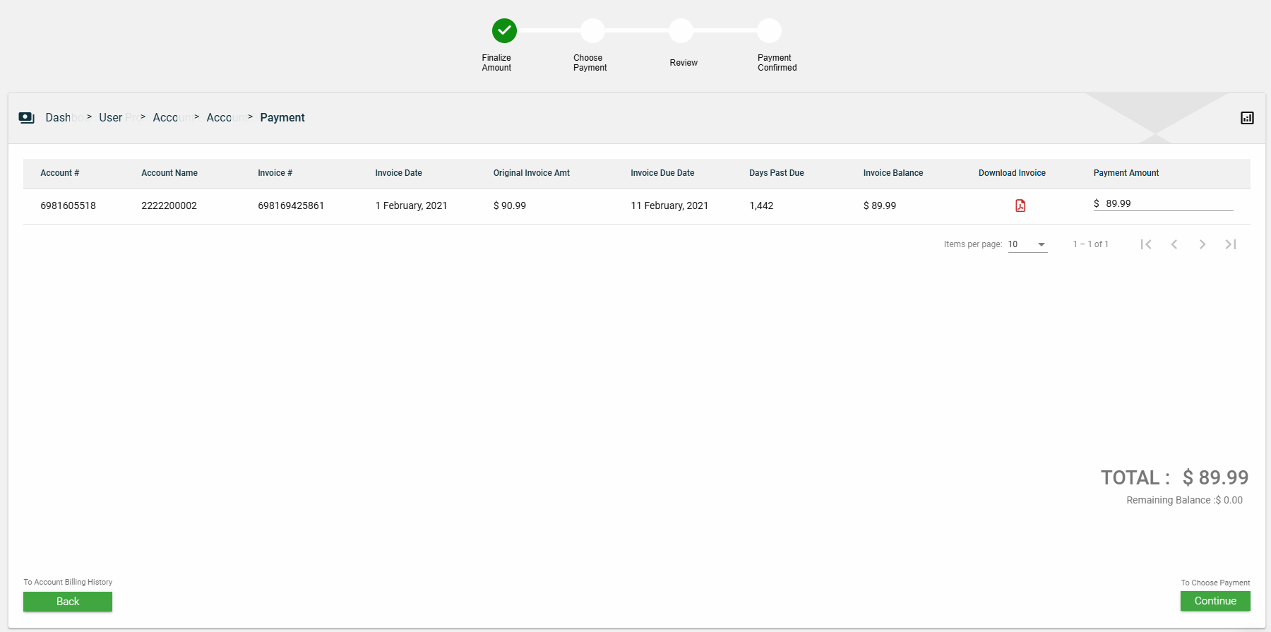 Select the invoice from the Account Billing History. You can also check the Select All check box to include all the unpaid invoices.