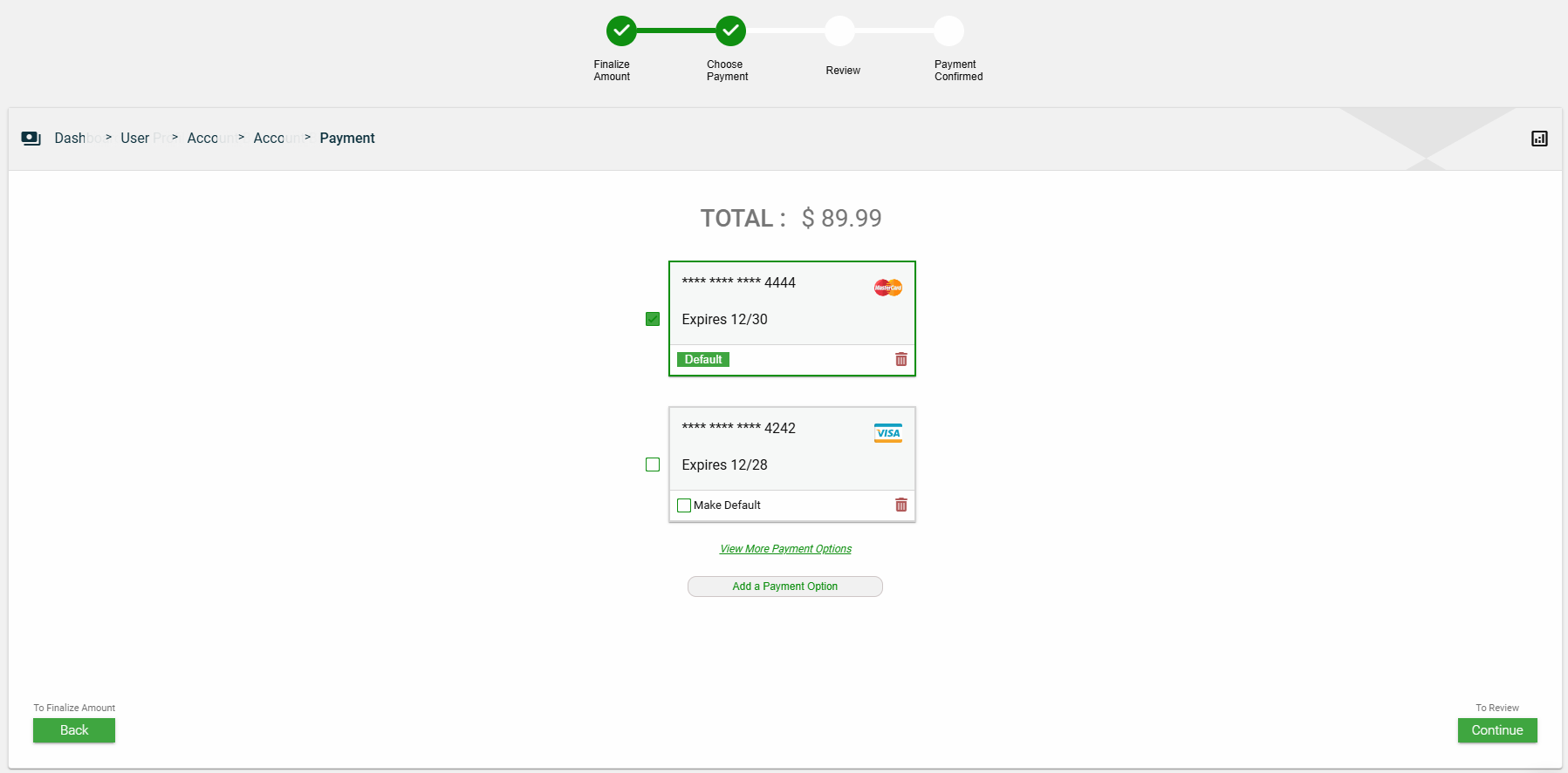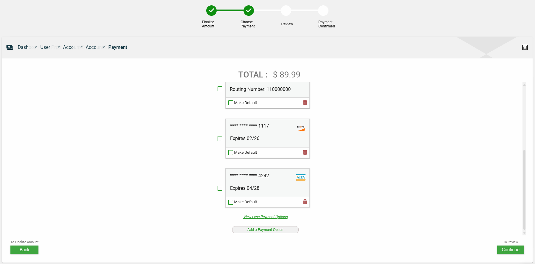 Select a payment option. If you wish to add a new payment option, see Add a payment option.