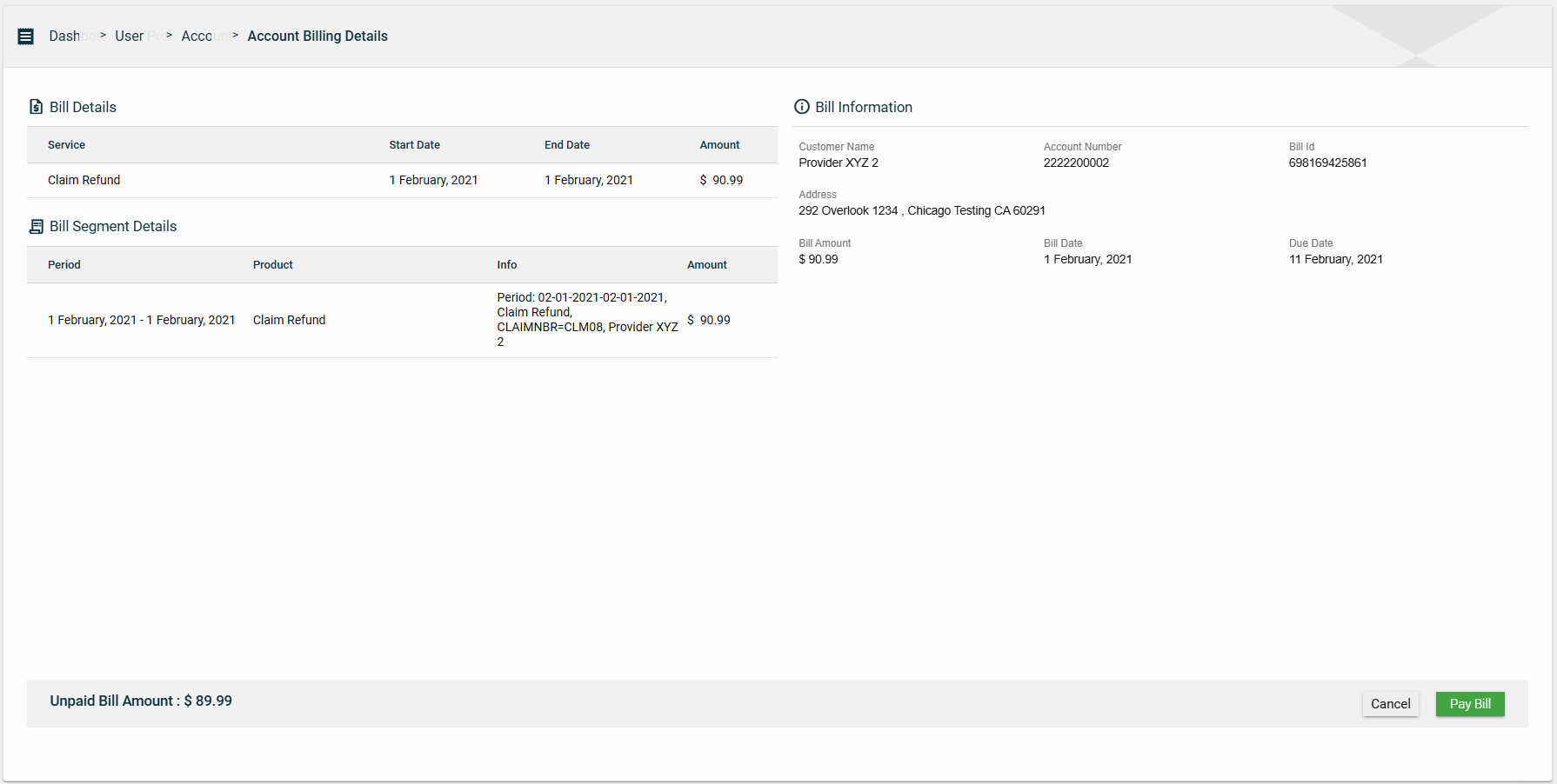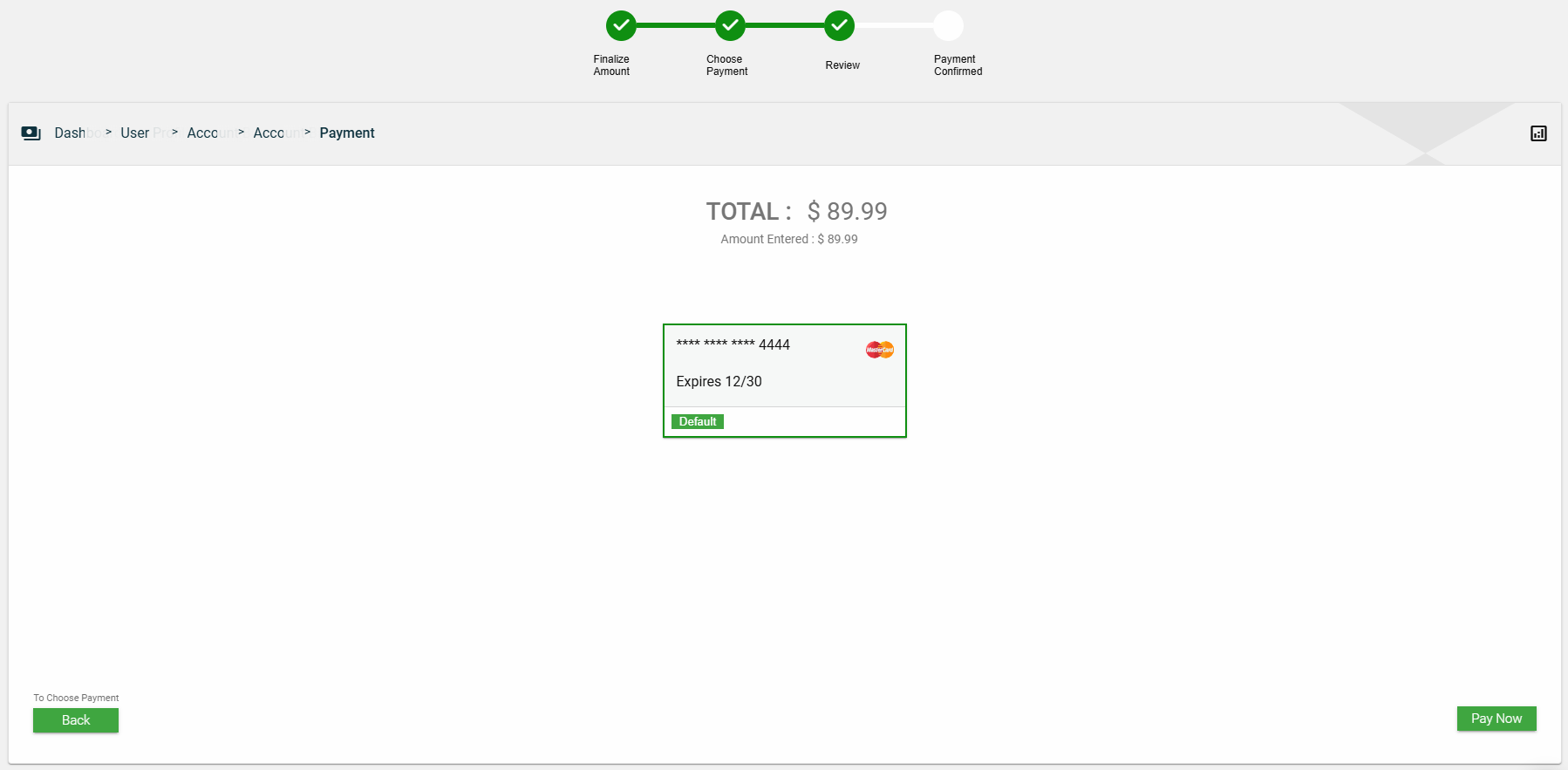 Click the Back button to return to Account Billing History to make another payment or the Return Home button to return to the Dashboard.