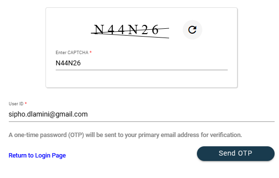 Click the Send OTP button. An OTP will be sent to the email you provided in Step 3, and another OTP will be sent to the mobile number associated with your account.