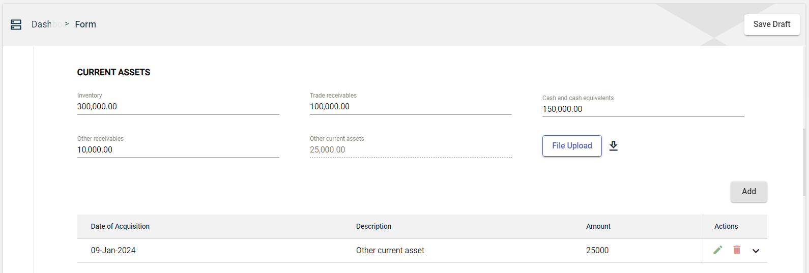 If you have other current assets that were not specified in the form, you can add them by following these steps: