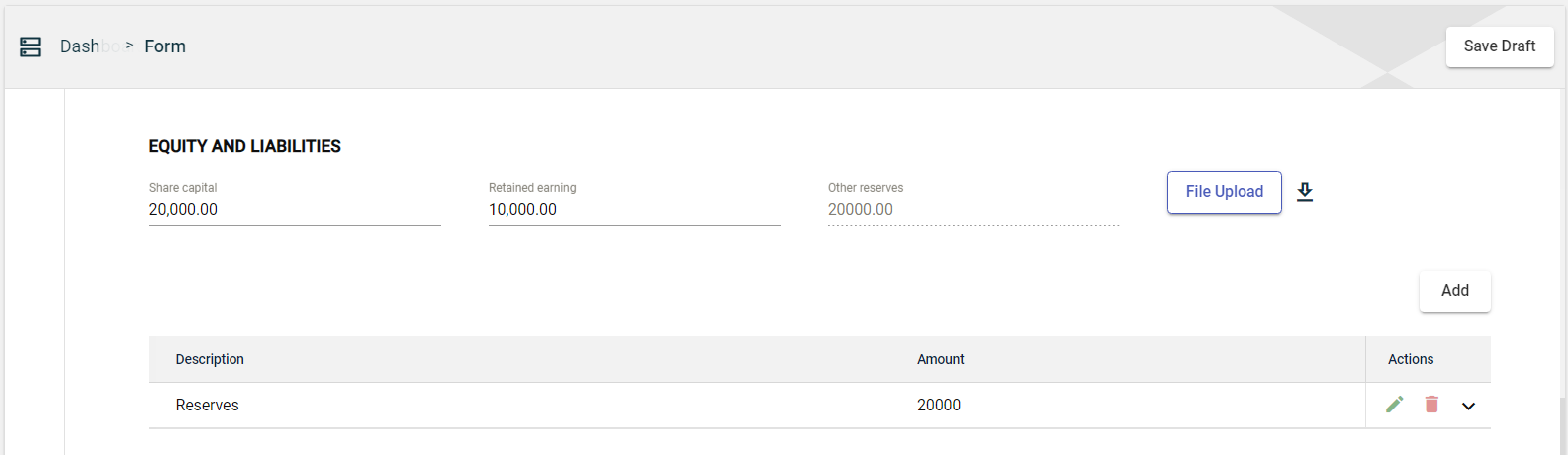 - Click the Add button in the EQUITY AND LIABILITIES section.
