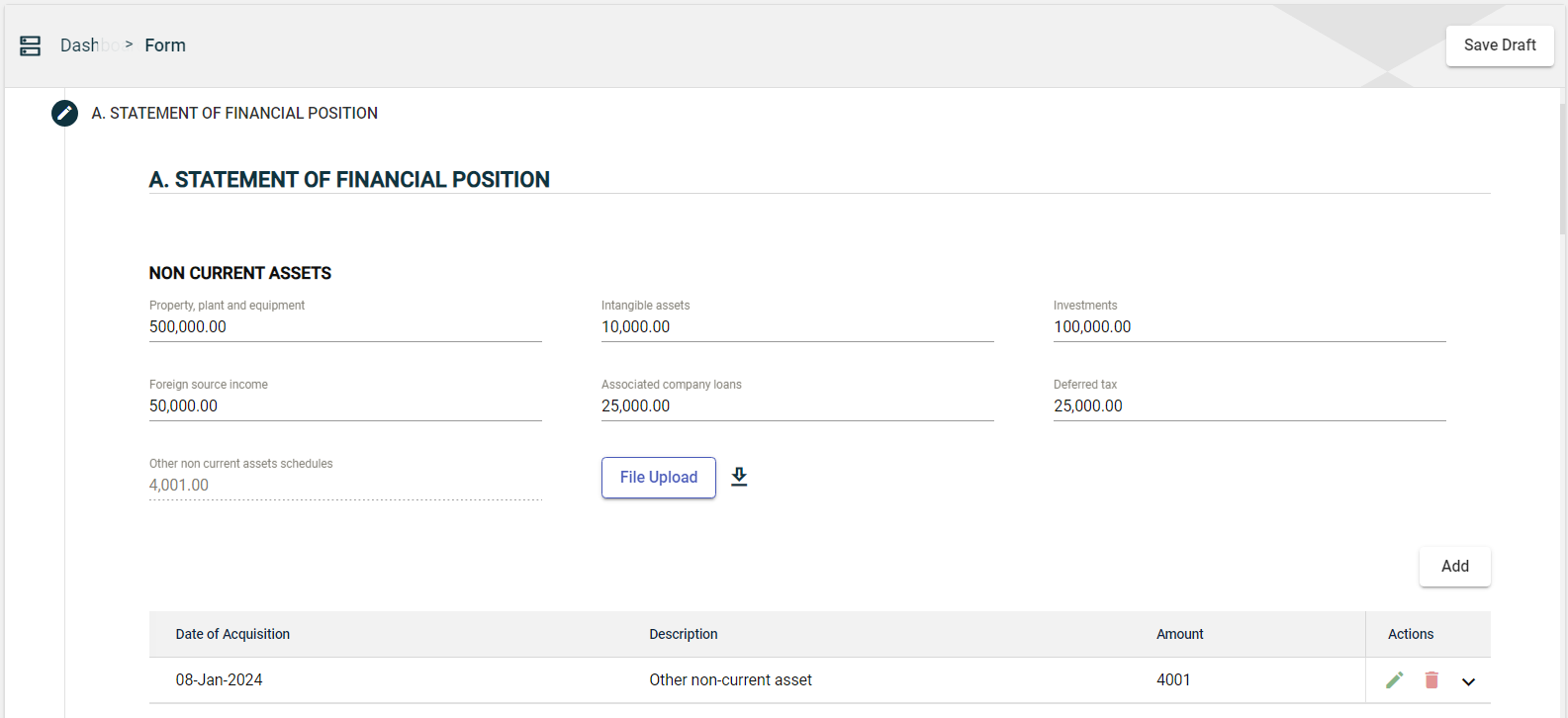 If you have other non-current assets that were not specified in the form, you can add them by following these steps: