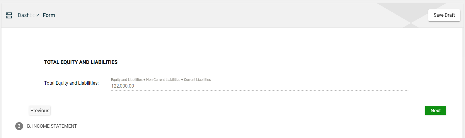 The Total Equity and Liabilities field is automatically populated with the value that is calculated as follows: