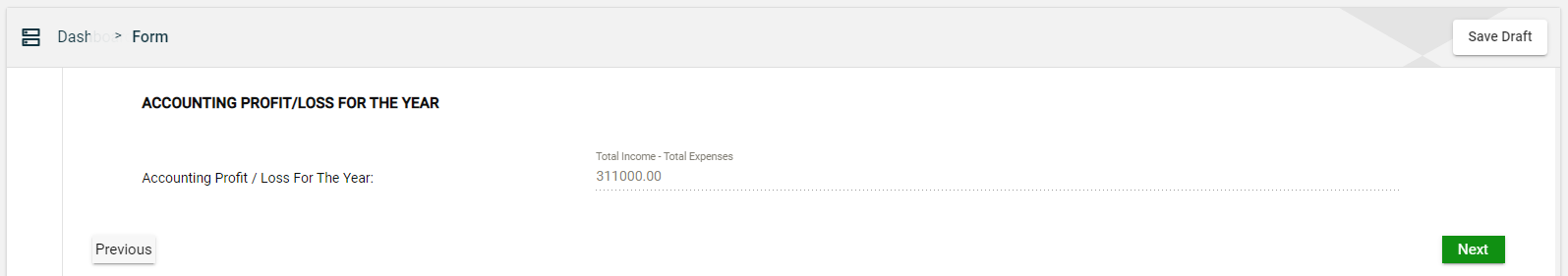The Accounting Profit / Loss For The Year field is automatically populated with the value that is calculated as follows: