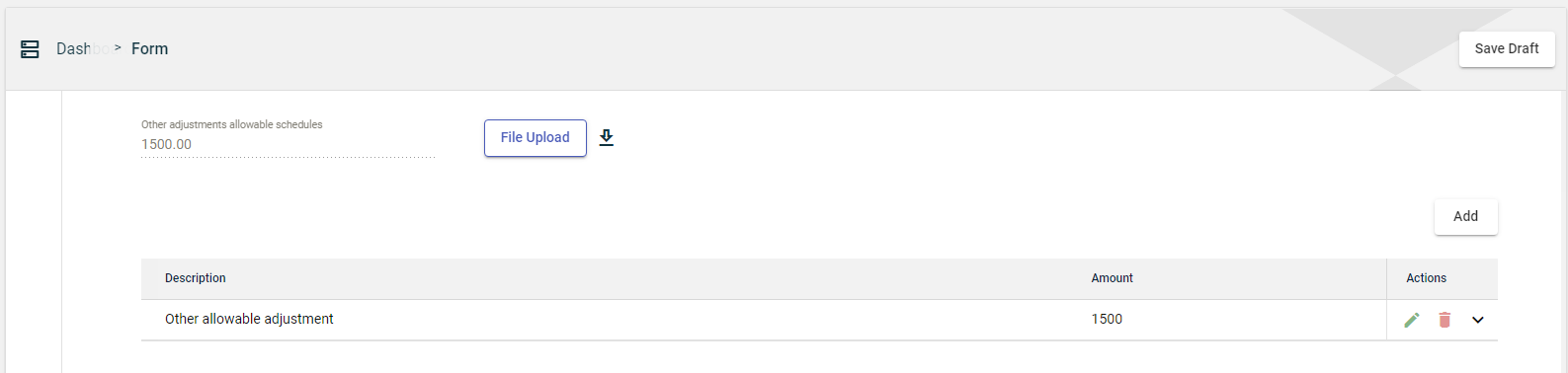 You can also upload schedule files by clicking File Upload to automatically capture other allowable adjustments.