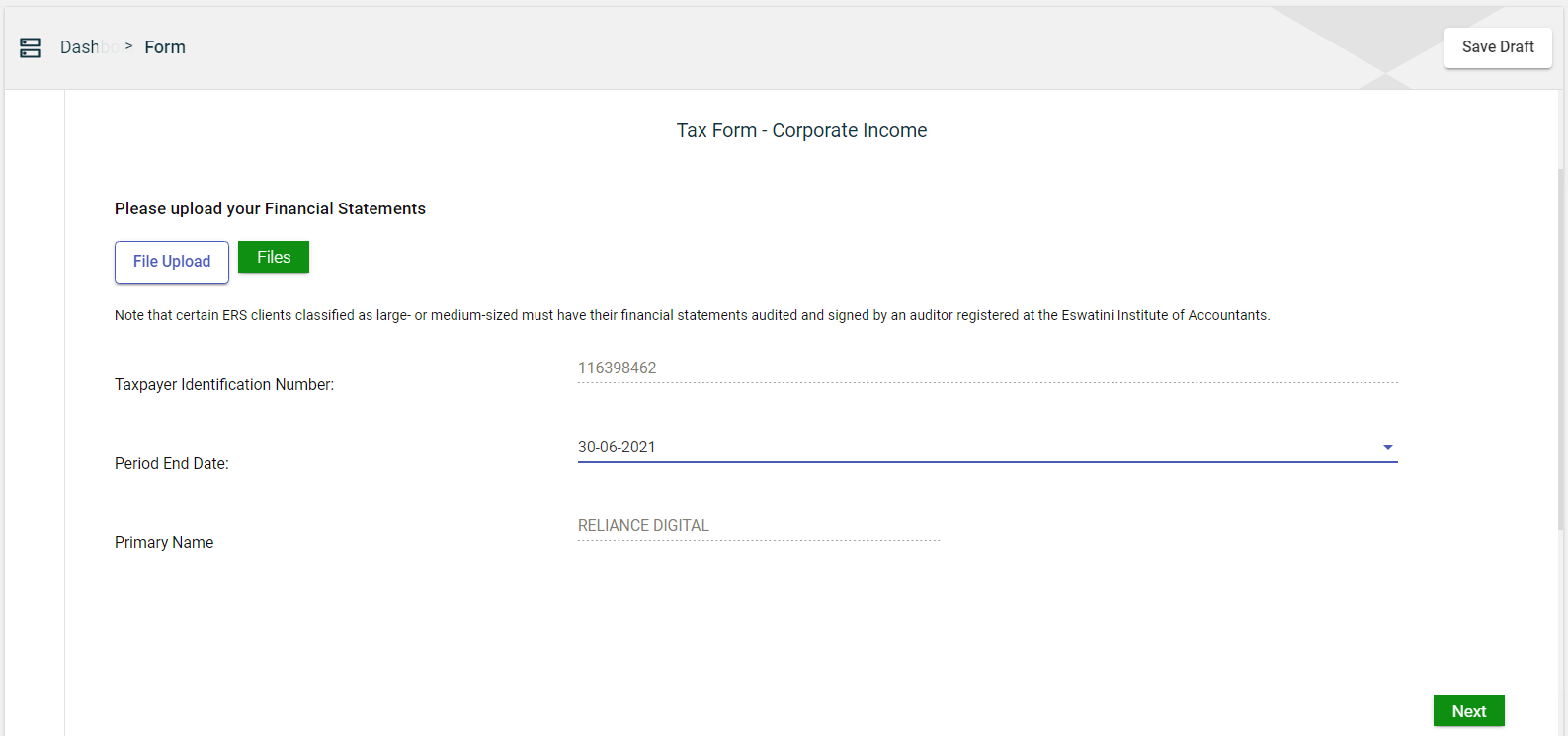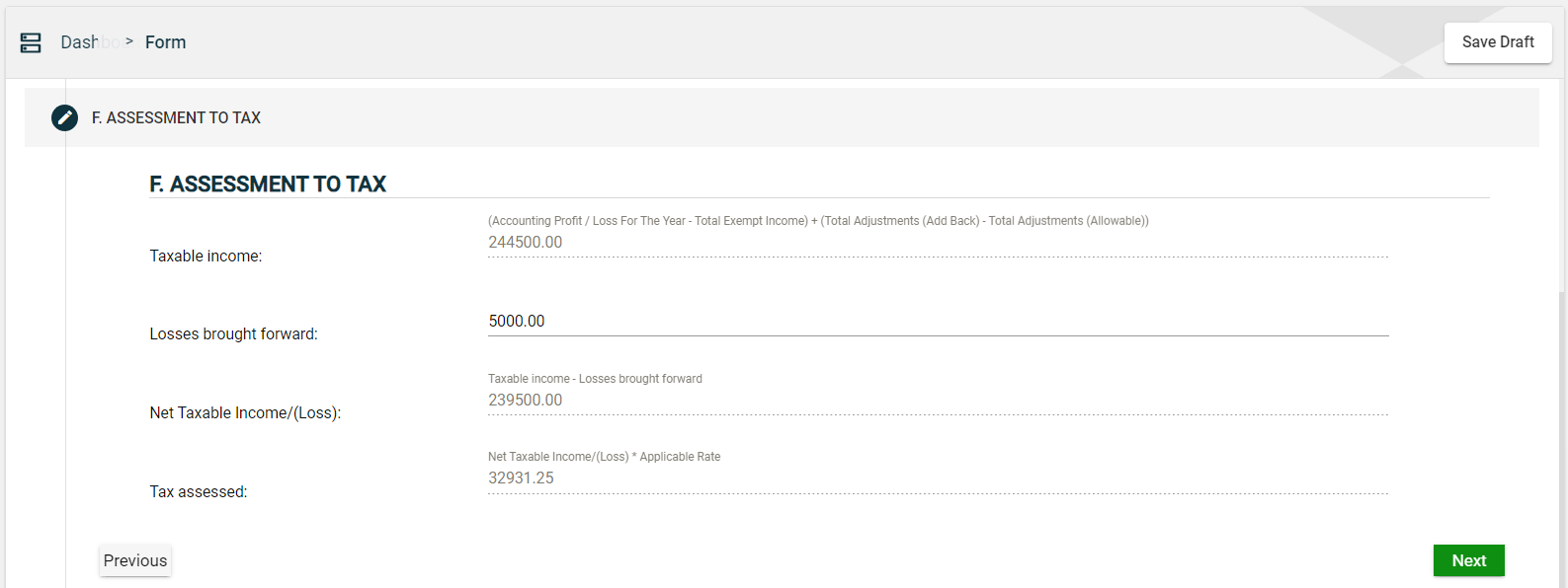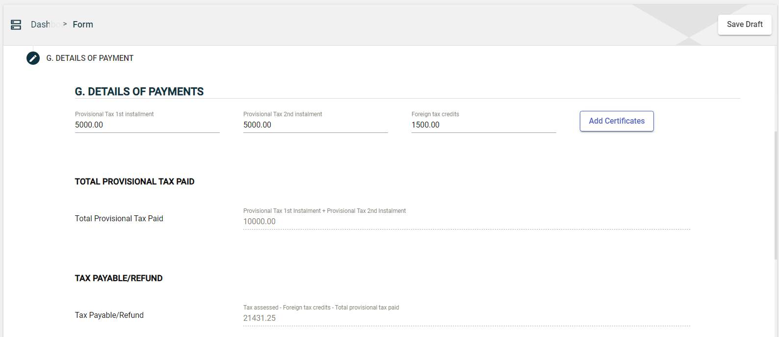 You can now save a draft of the filled-out tax form by clicking the Save Draft button at any time before submitting it.