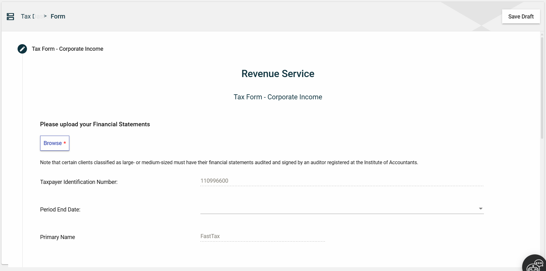 You can now save a draft of the filled-out tax form by clicking the Save Draft button at any time before submitting it.