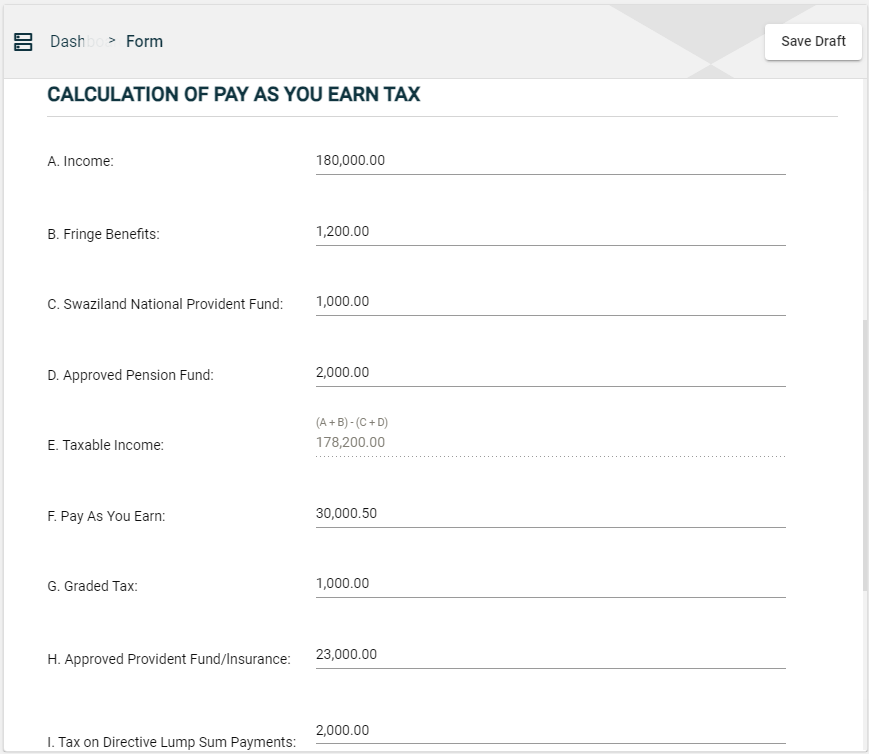 You can now save a draft of the filled-out tax form by clicking the Save Draft button at any time before submitting it.