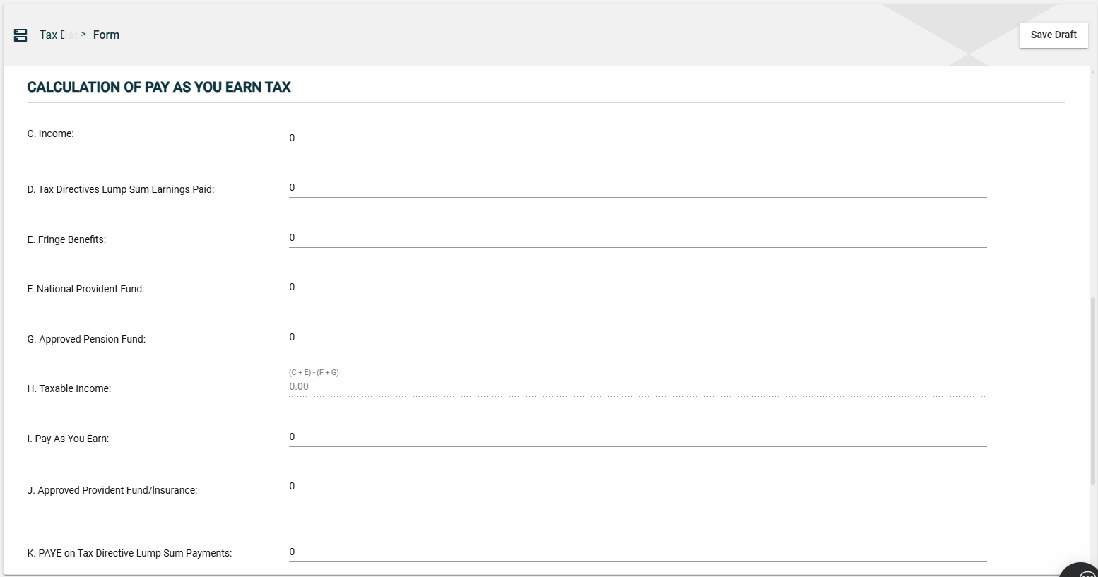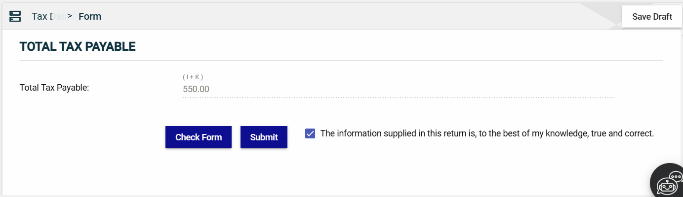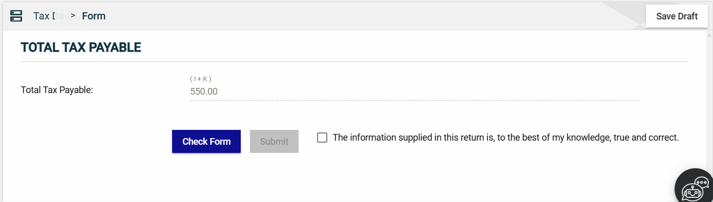 You can now save a draft of the filled-out tax form by clicking the Save Draft button at any time before submitting it.