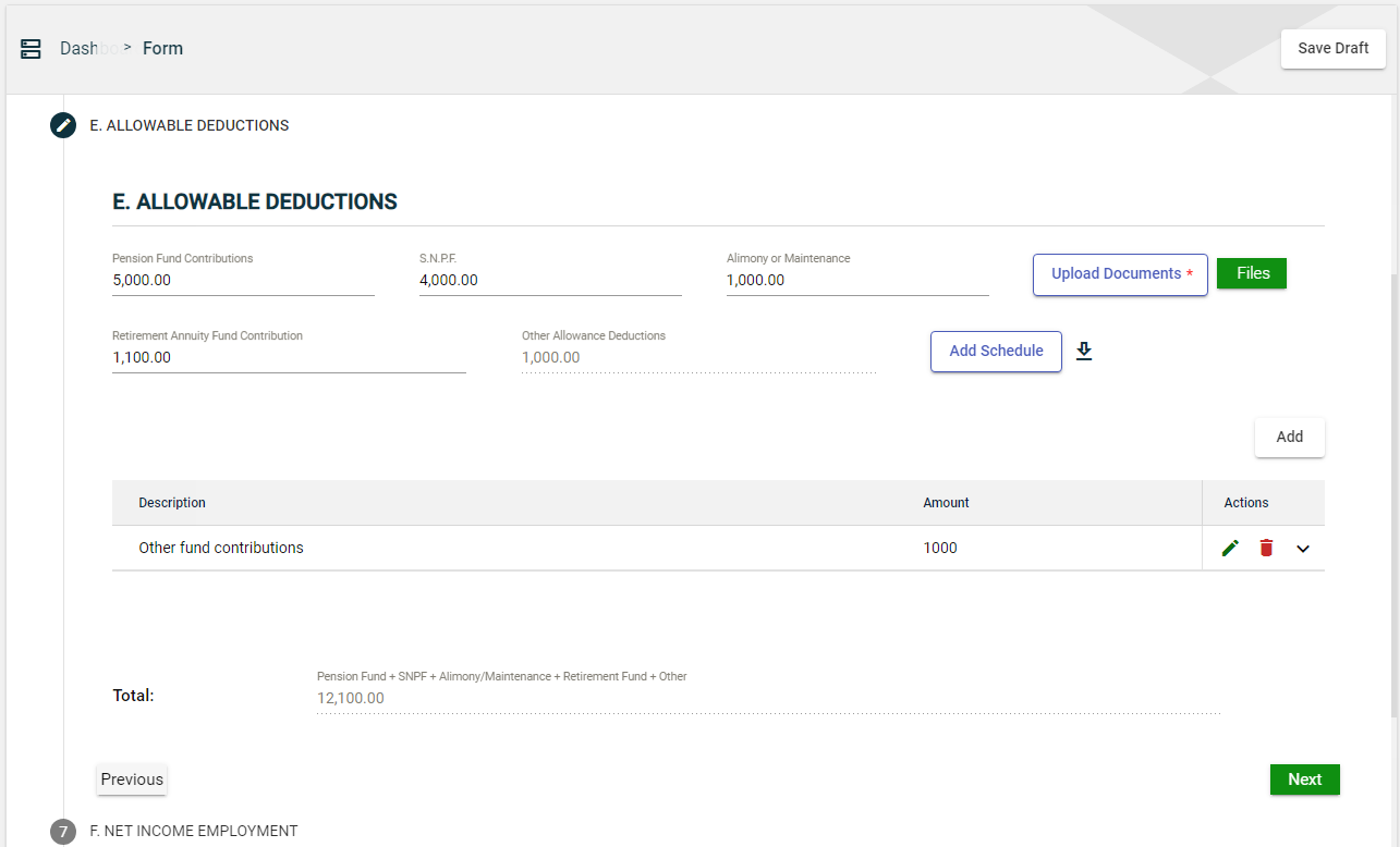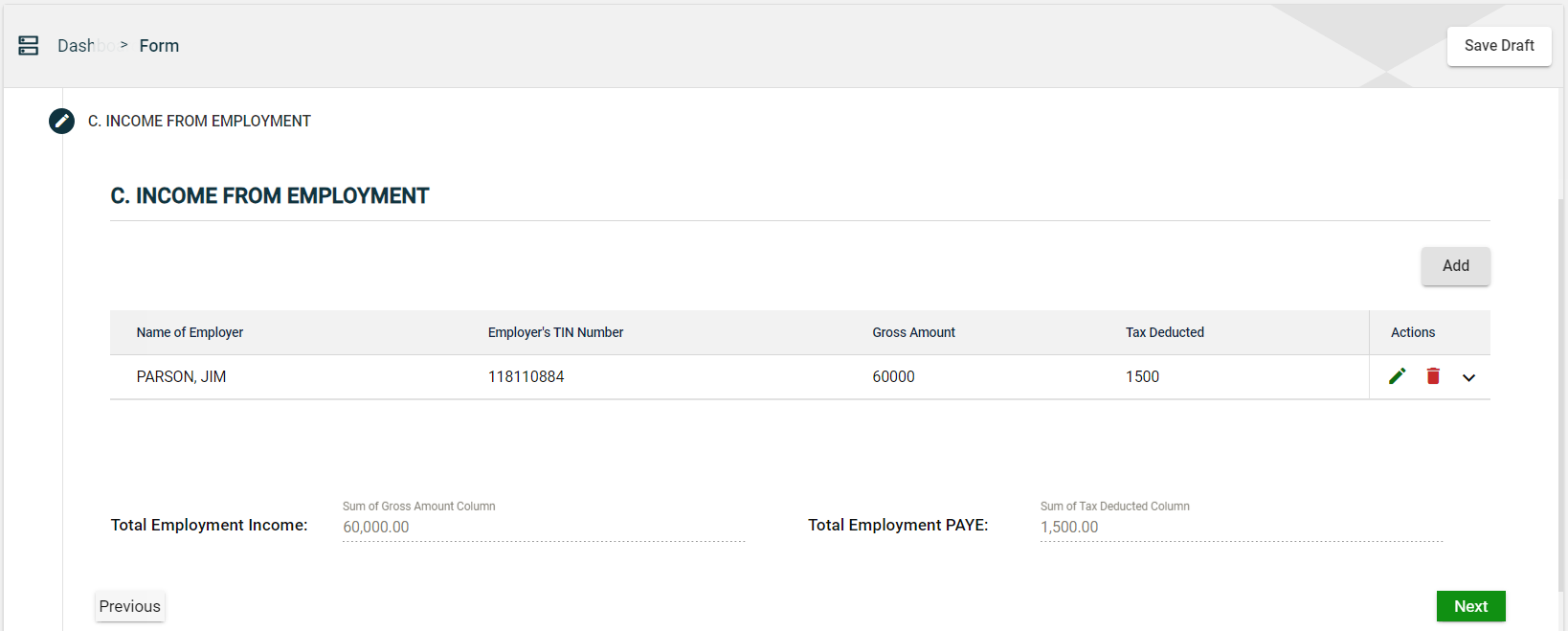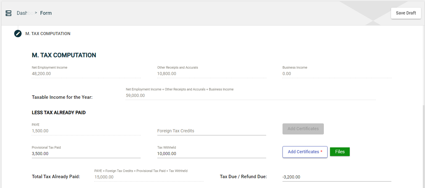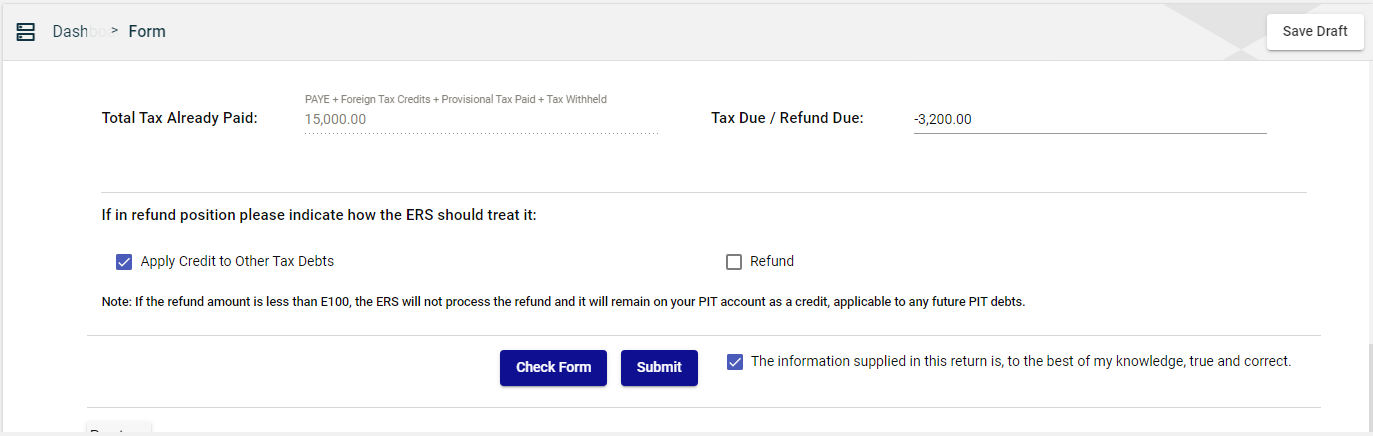 You can now save a draft of the filled-out tax form by clicking the Save Draft button at any time before submitting it.