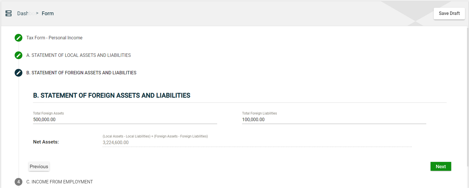 - Enter the total value of your foreign liabilities in the Foreign Liabilities field.