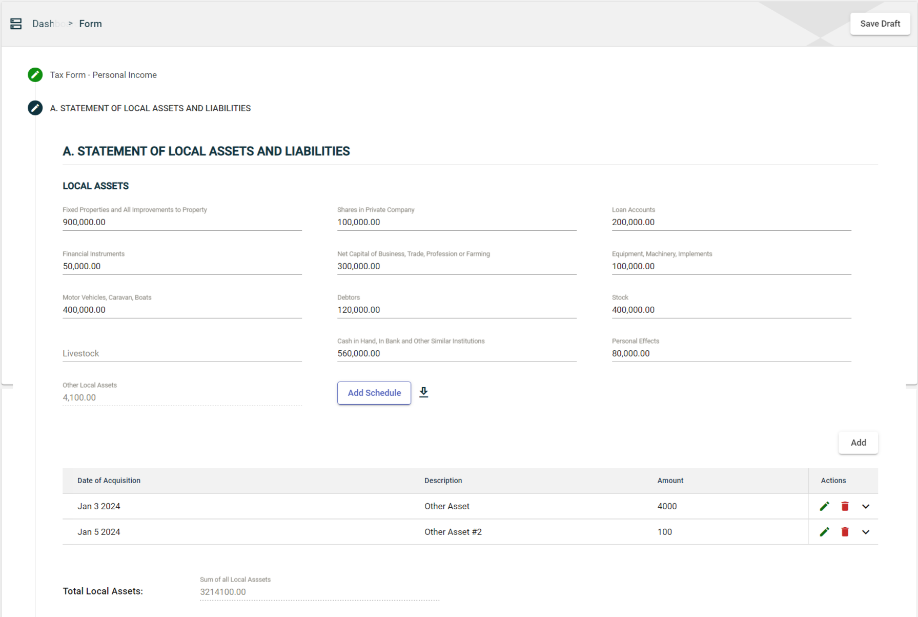 The Sum of all Local Assets field is automatically populated with the sum of all asset values entered in the LOCAL ASSETS section.