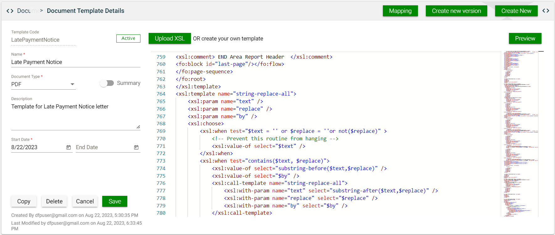 Once confirmed, an exact copy of the previously viewed template will be displayed, allowing you to make any necessary edits or modifications.