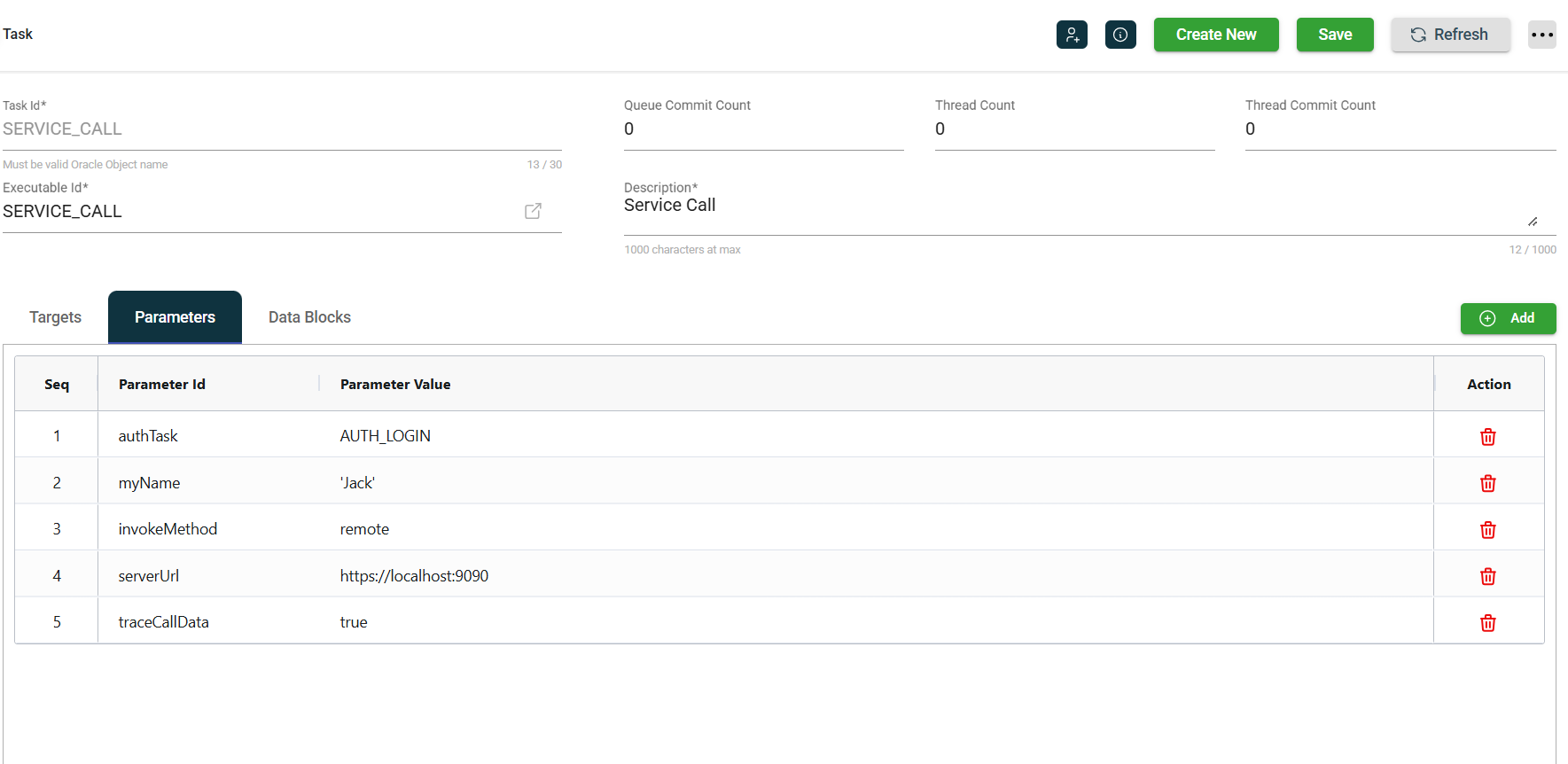 If the service requires an OAuth token, which would typically be the case in a SaaS environment, a single authTask should work if a client credentials or password grant is used. This DUMMY_TASK below invokes a service at http://localhost:9090, and it requires an OAuth token, which the AUTH_LOGIN authentication task provides.