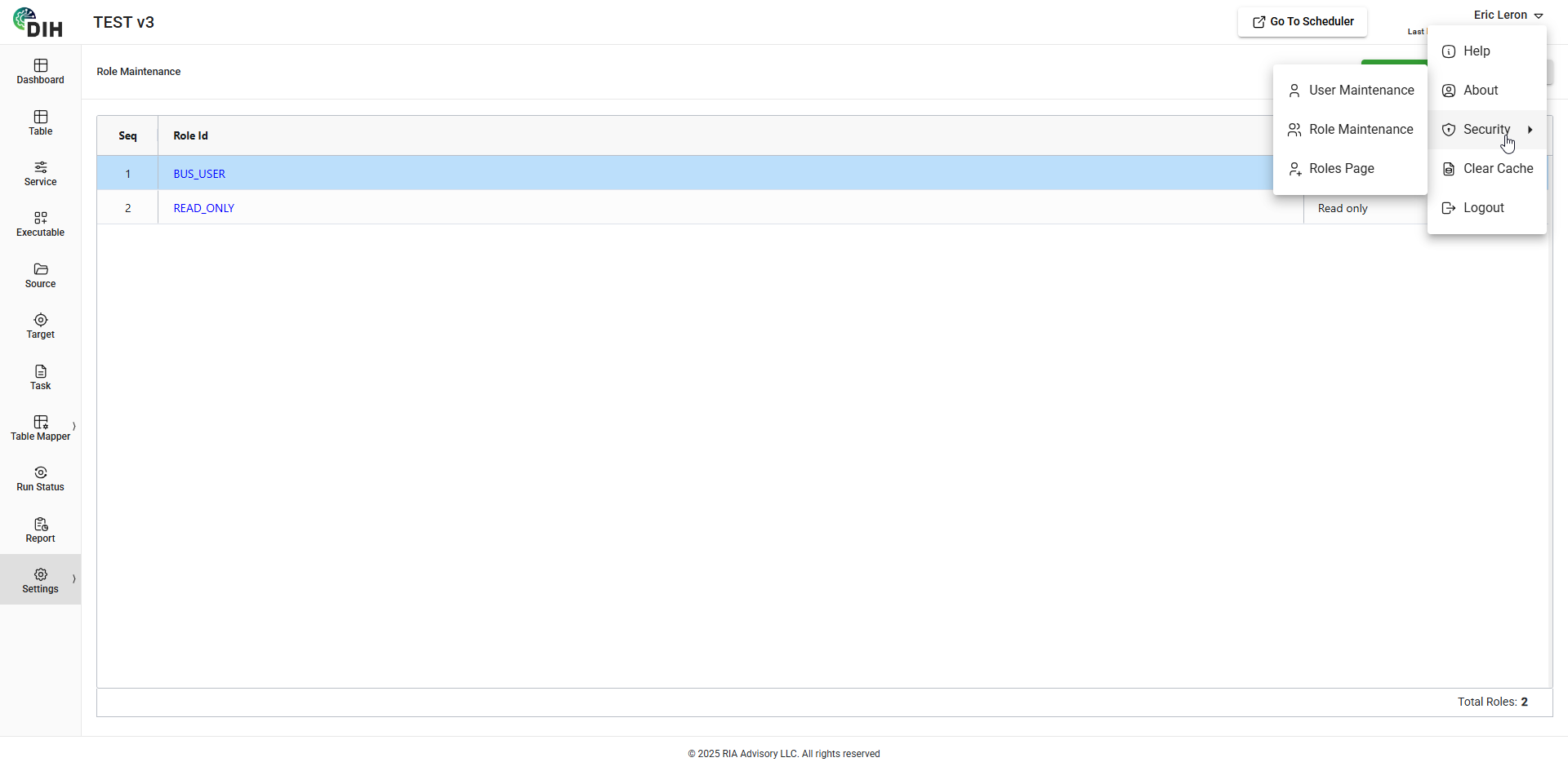 The User Maintenance and Role Maintenance is where the User, Role, Role Access, Role Menu, and User Entity Role entities are maintained.