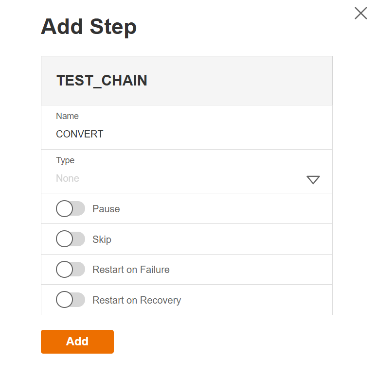 | Step Type | Type of the step to be used. The The following are the possible values: