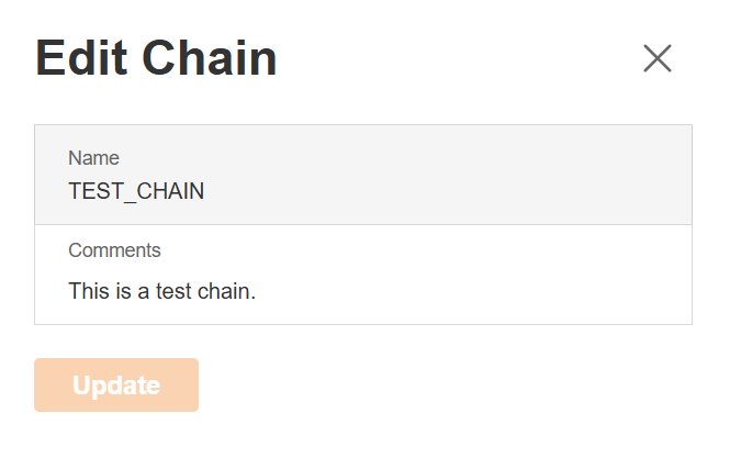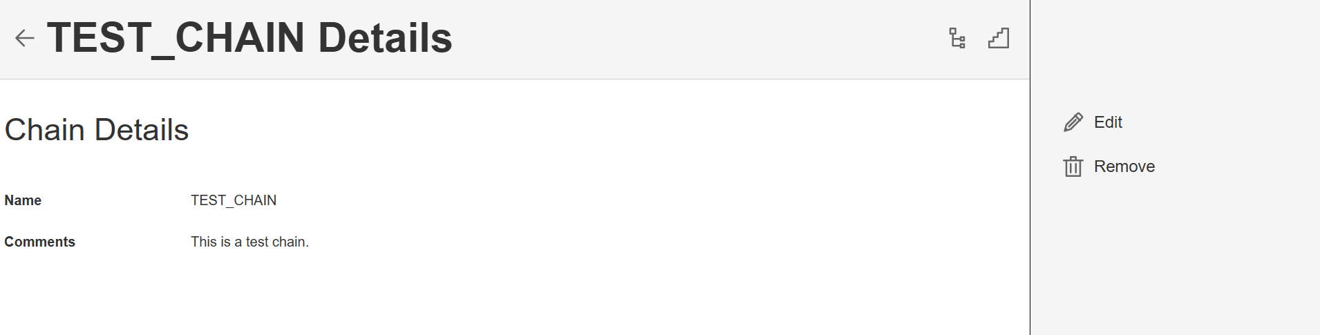 The Chains module allows you to update the view the details of the chain. To view the chain details, click the