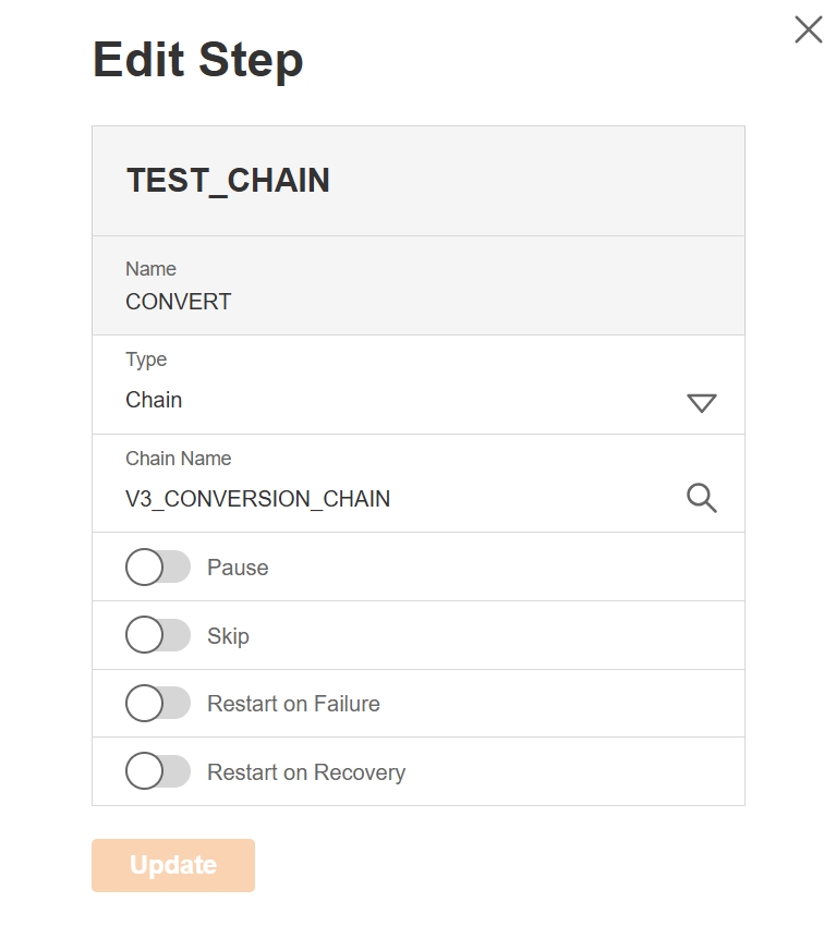 The Chains module allows you to update the details of an existing step. To make modifications, select the step from the list, click Edit Step, and change the values in the fields as needed.