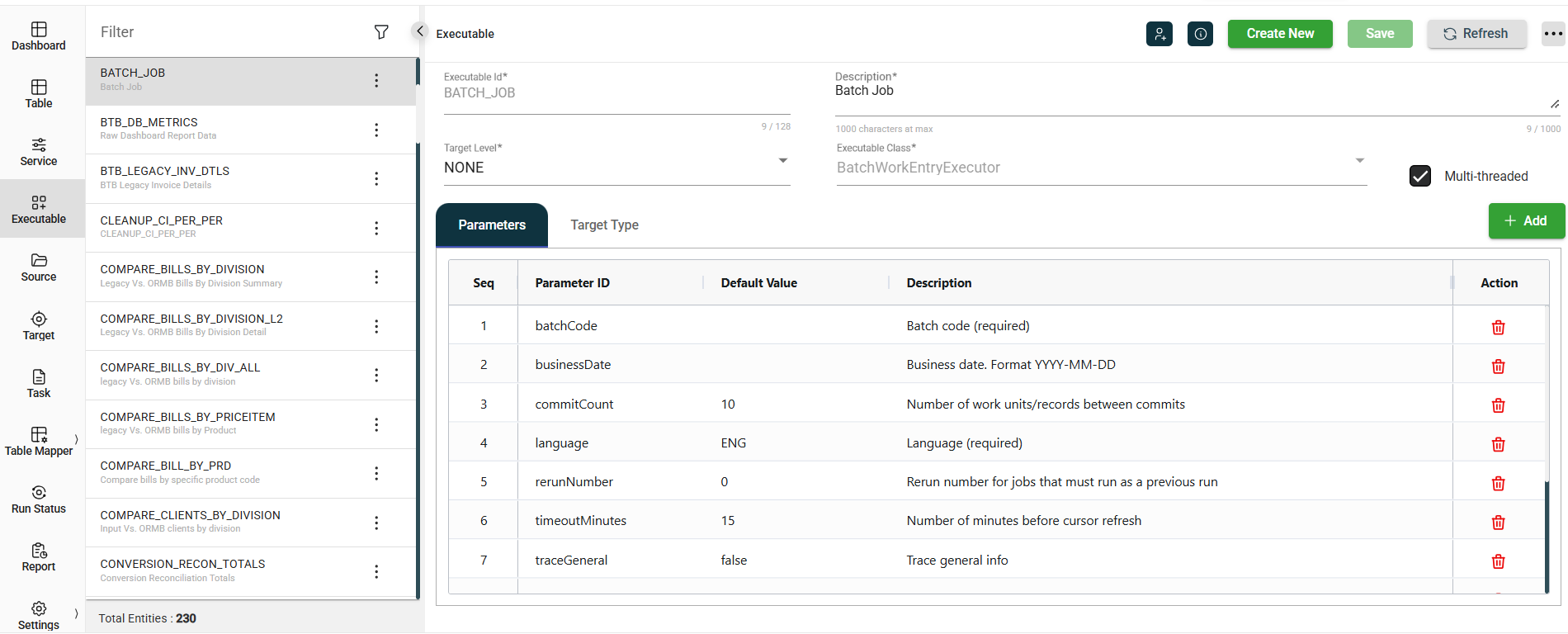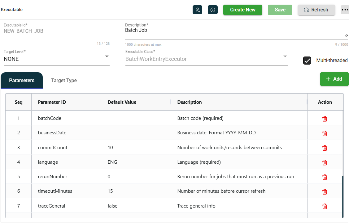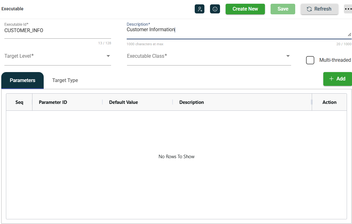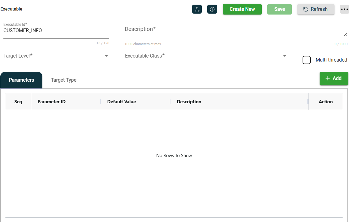 | Executable Id | Name of the executable. Mandatory: Yes |
