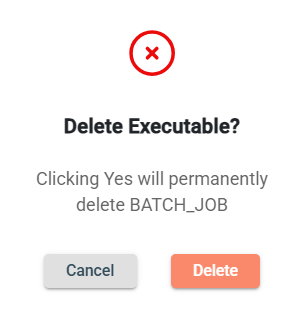 When deleting an executable, ensure that you are deleting the correct executable because it will be permanently removed from the system.