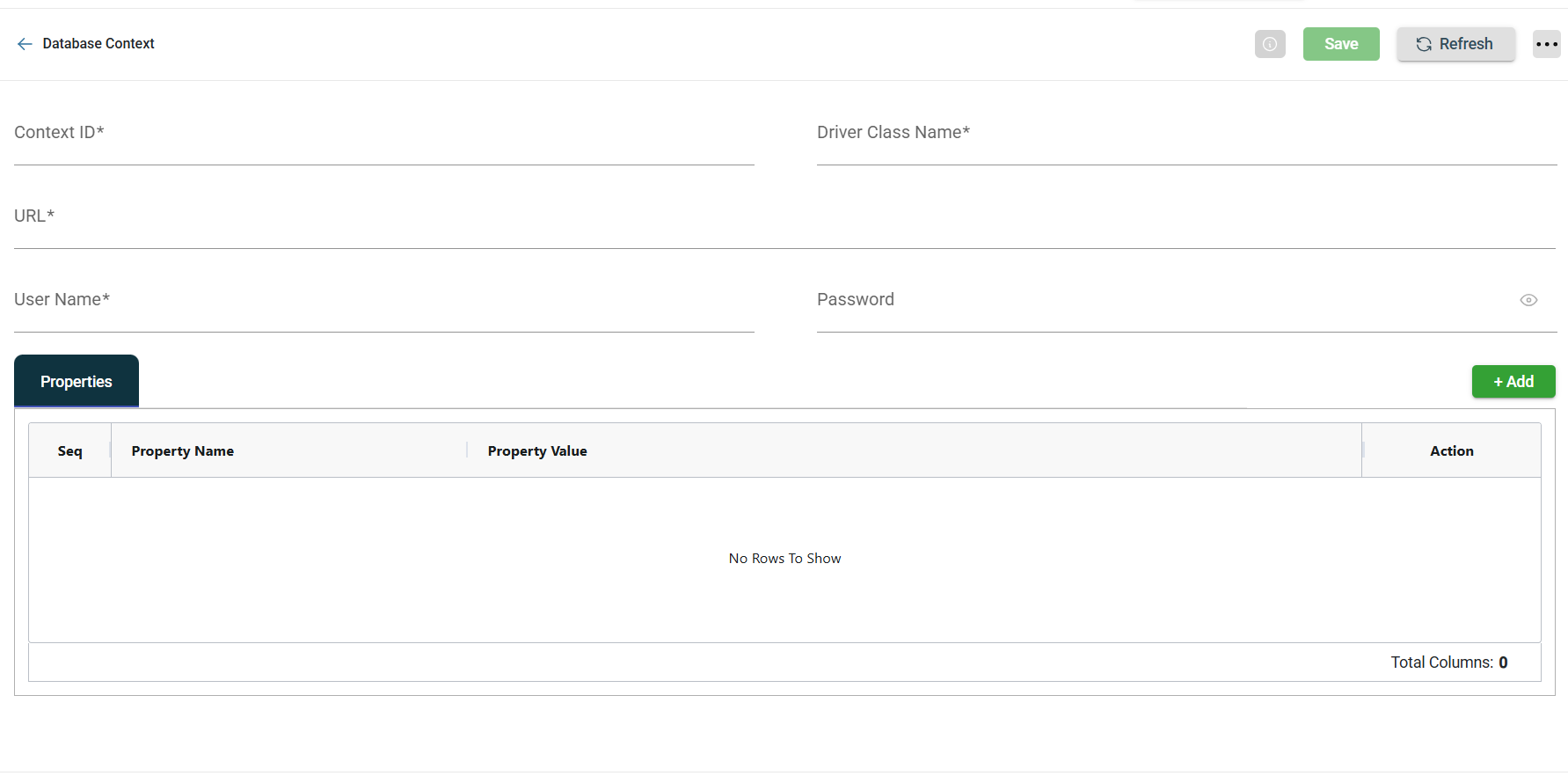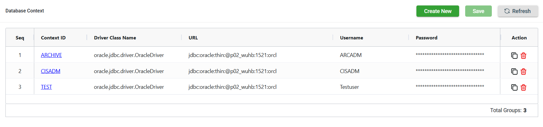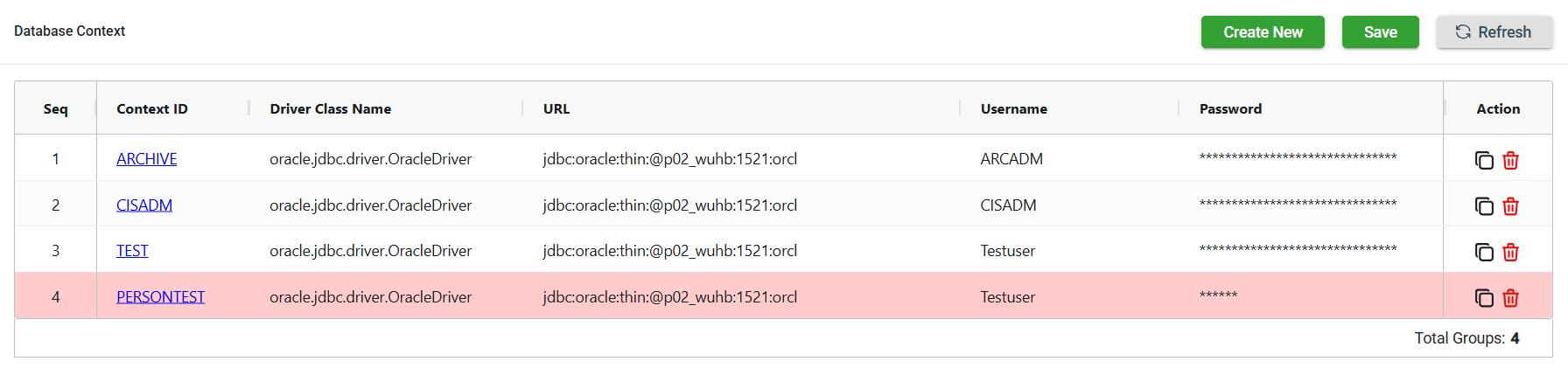 The Database Context module allows you to update the details of an existing database context. To make modifications, select the context ID from the list and change the values in the fields as needed.