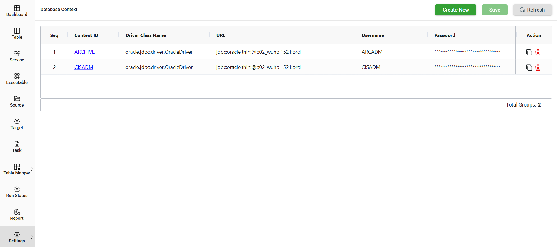 The Database Context module allows authorized users to manage database connections. The module specifically allows users to connect to external databases or schemas. This provides possibilities wherein the user can retrieve data from a different schema and insert the data into another schema.