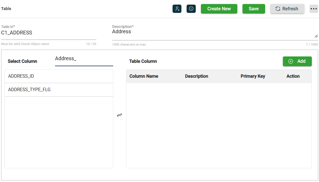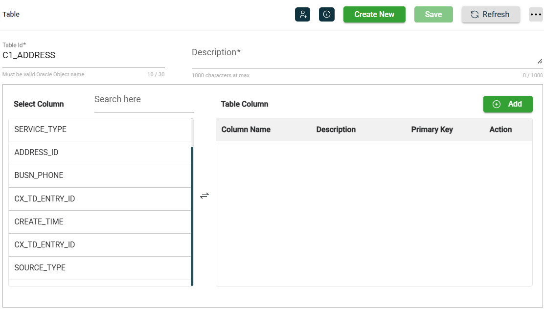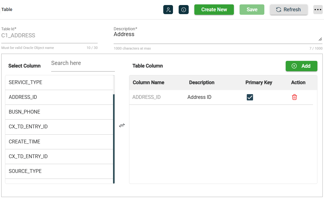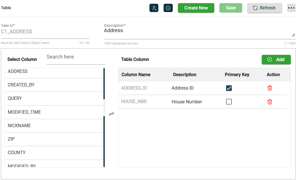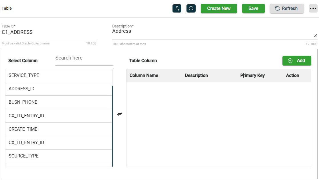Add your table columns to the Table Column section. For more information, see Add a table column.