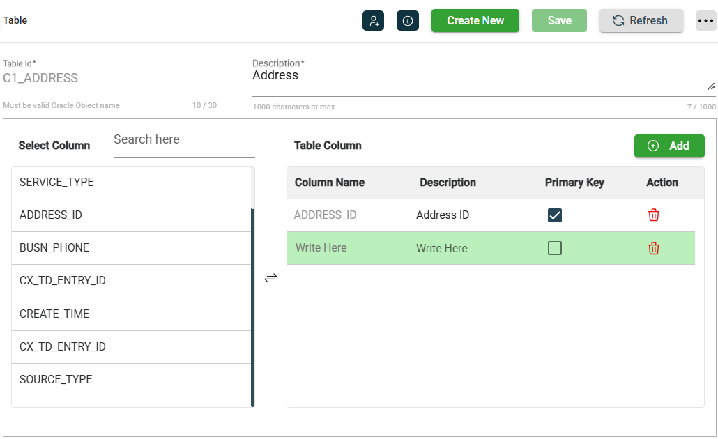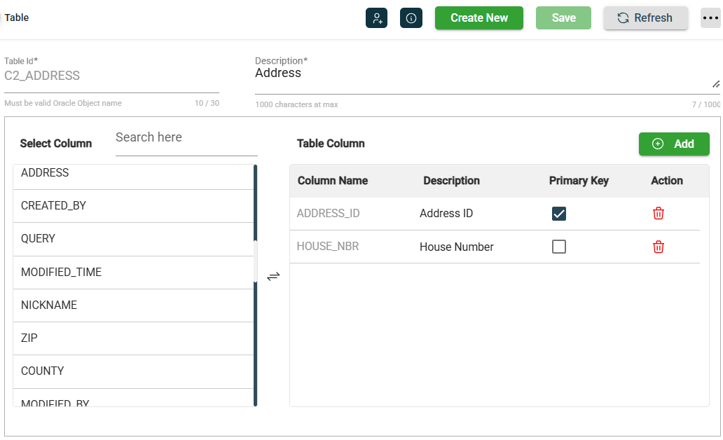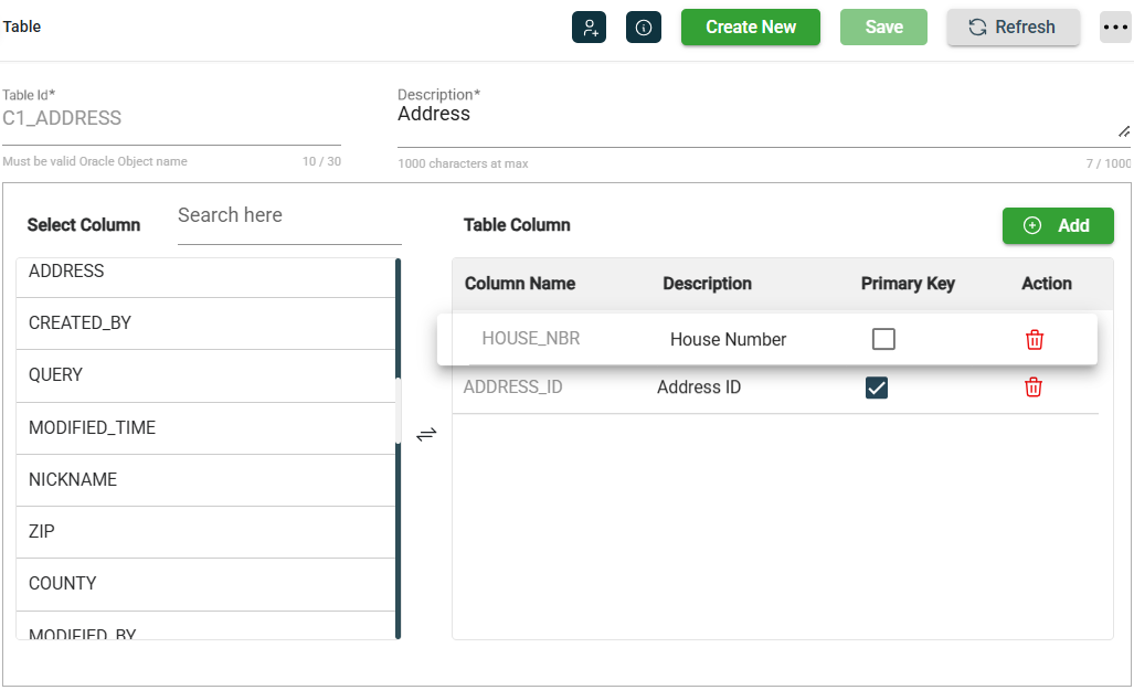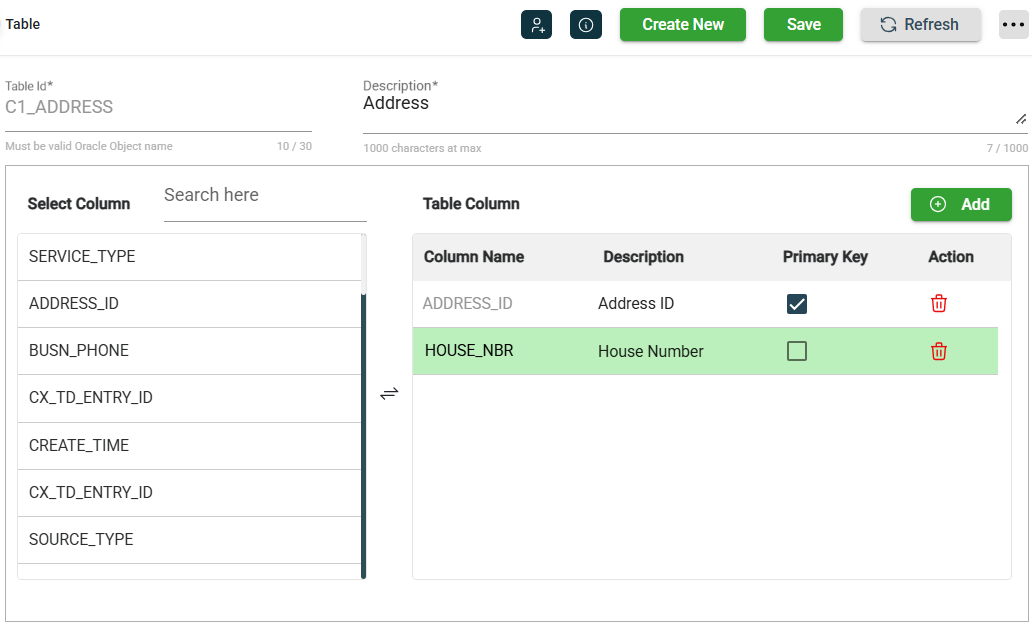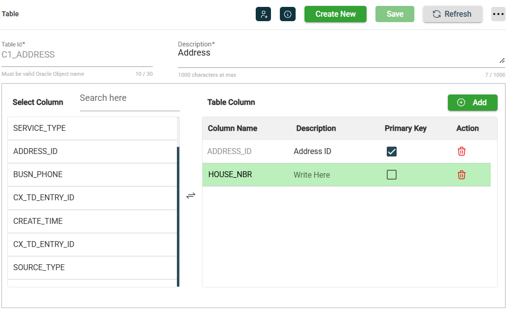 Add your table columns to the Table Column section. For more information, see Add a table column.