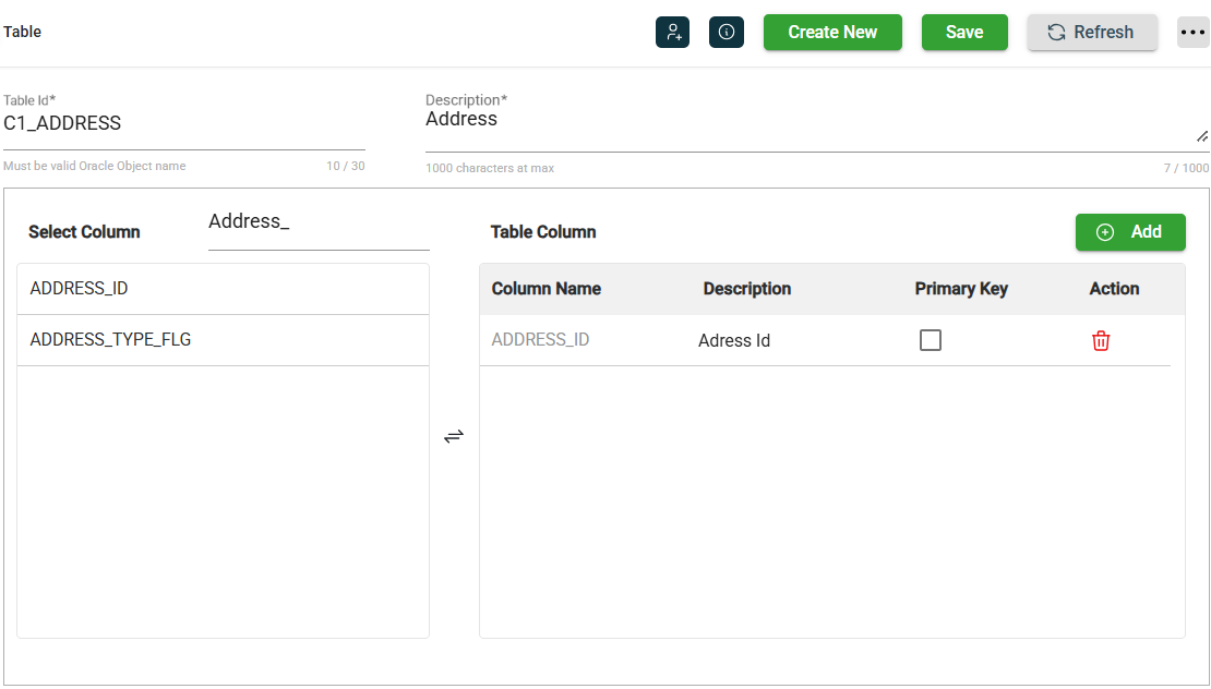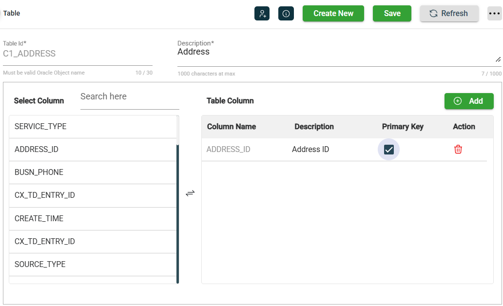 Mandatory only for source tables. Click the Primary Key checkbox if you intend to use the newly added column as the primary key for the table.
