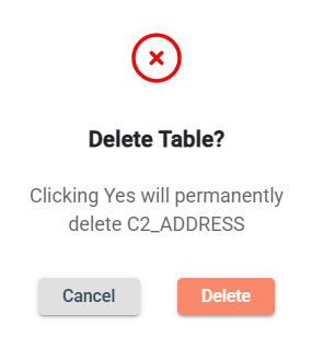 When deleting a table, ensure that you are deleting the correct table because it will be permanently removed from the system.