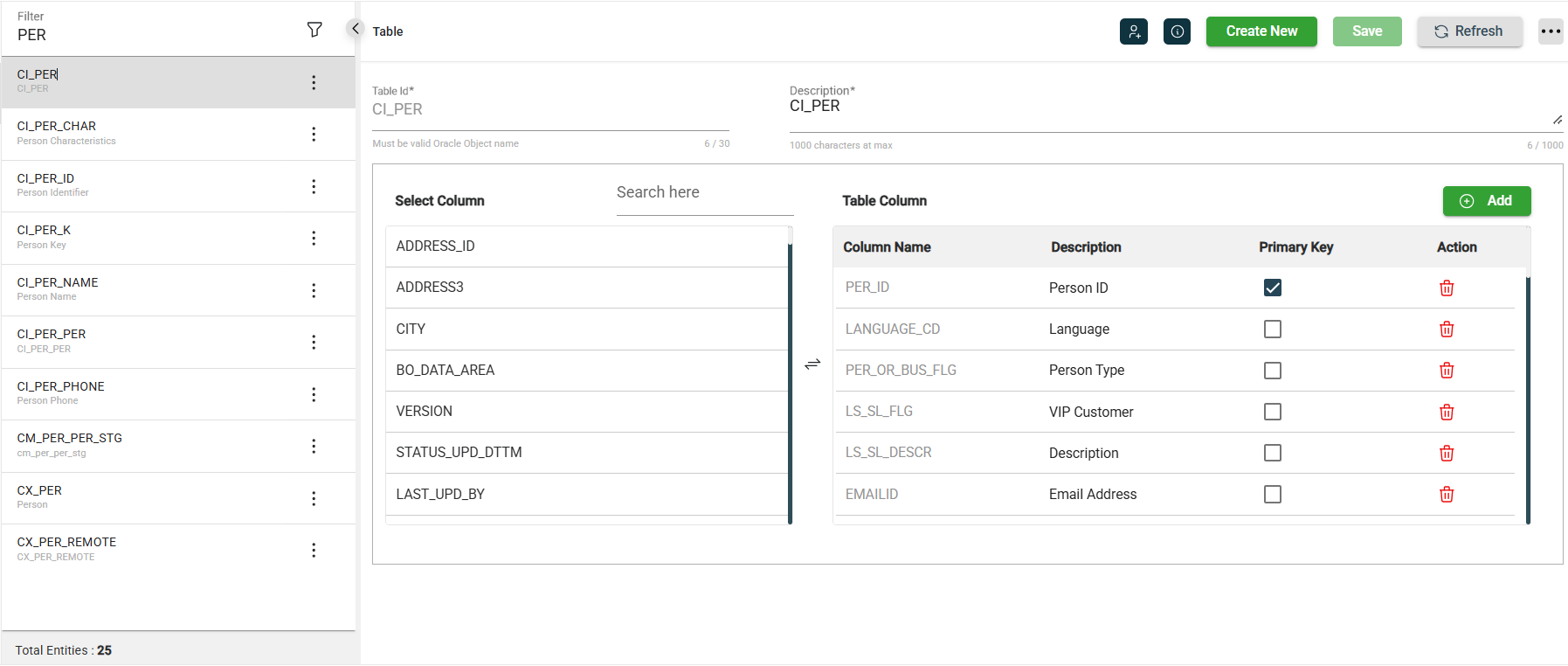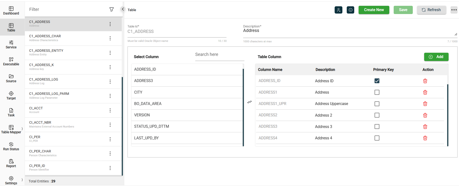 | Table Column > Primary Key | Indicates whether the table column is the primary key. DIH uses the primary key attribute to provide threading and restarting capabilities. |