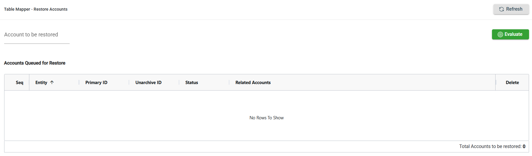 - Click Evaluate button to check which accounts are eligible for restoration.