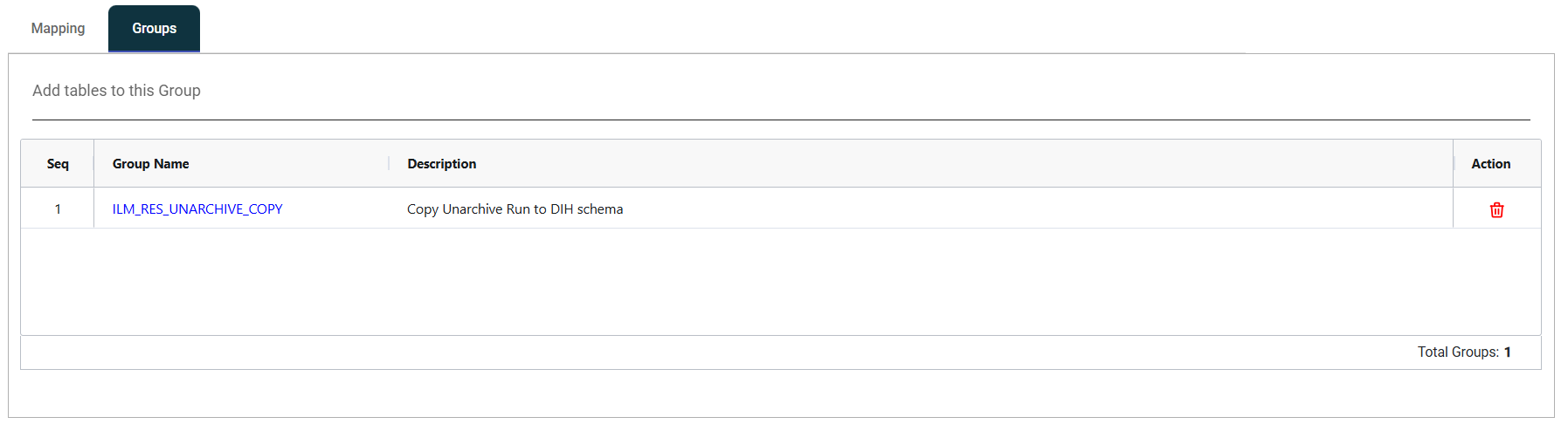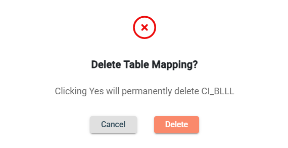 To delete a table mapping, click the