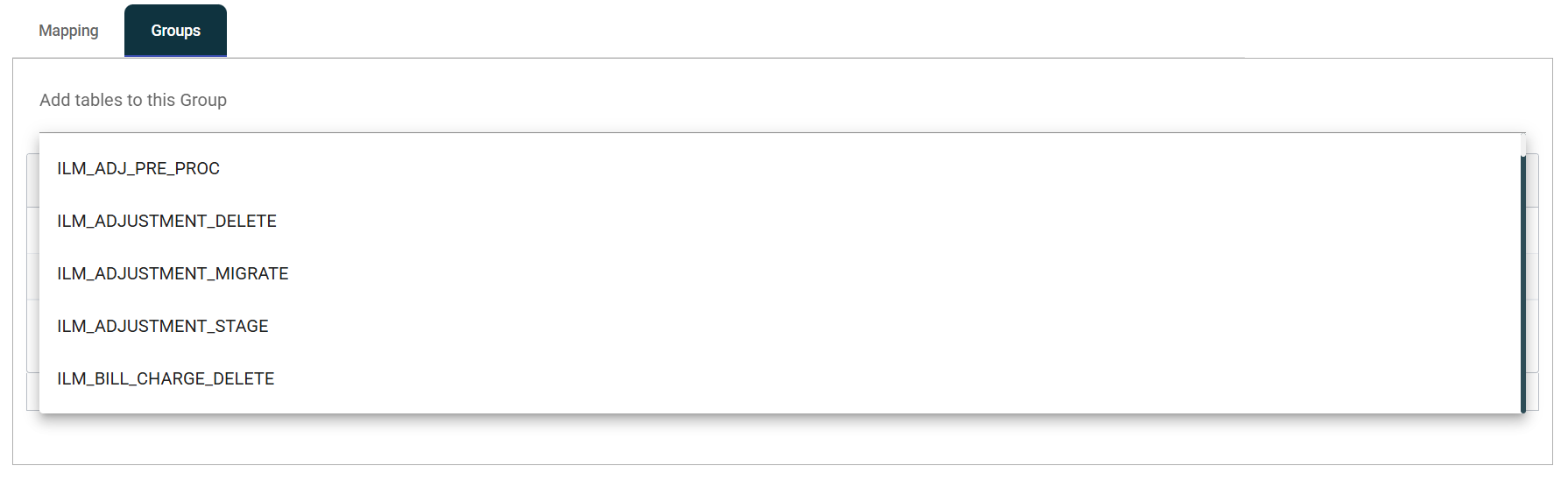 To add a table, select them from the Add tables to this Group dropdown.