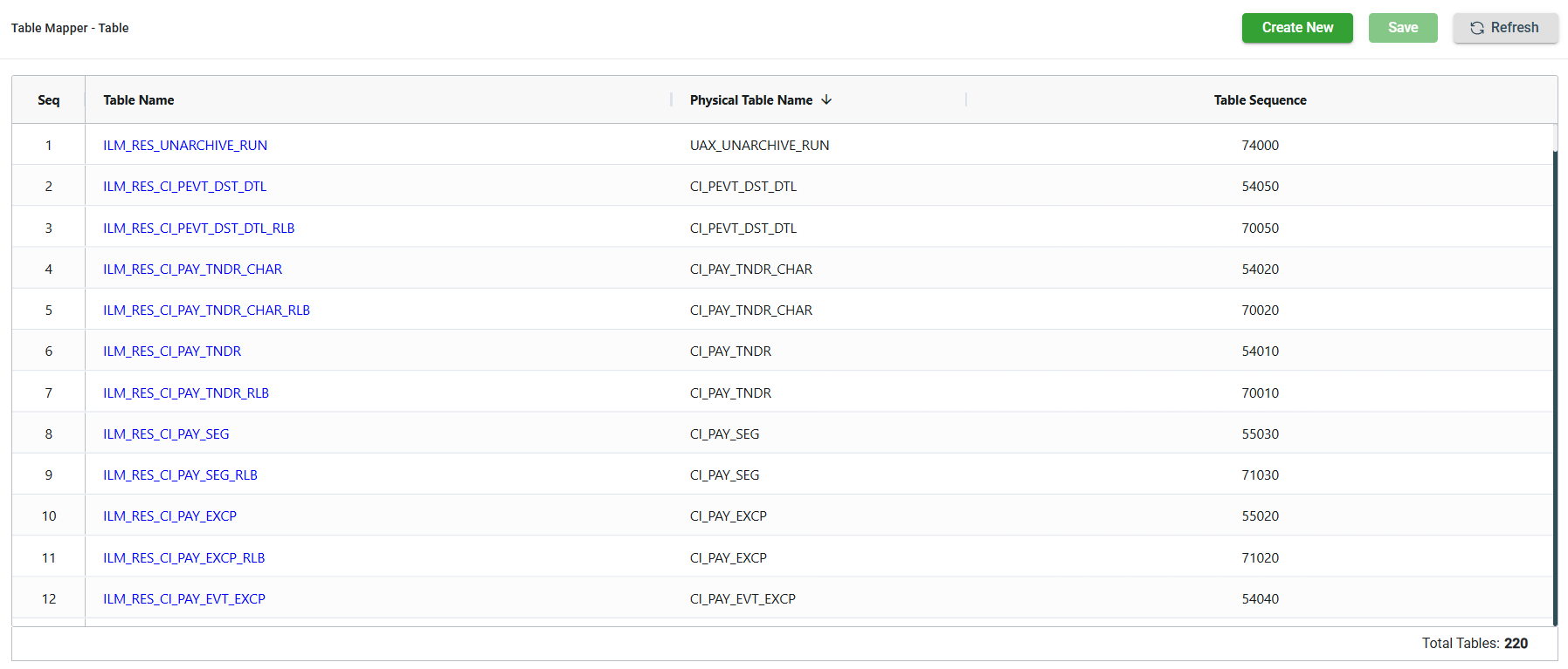 | Sequence | Displays the sequence number of the table. |