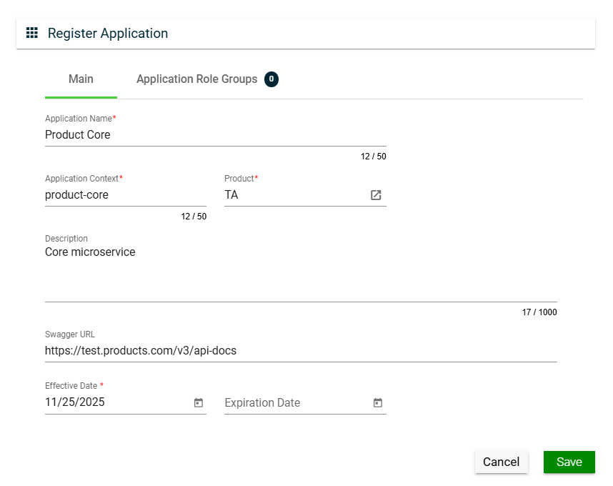 Role groups assigned to the application.