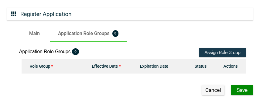 To assign a role group to your application, follow these steps: