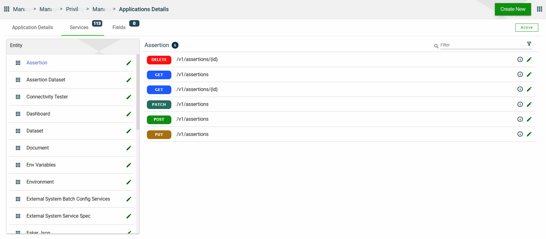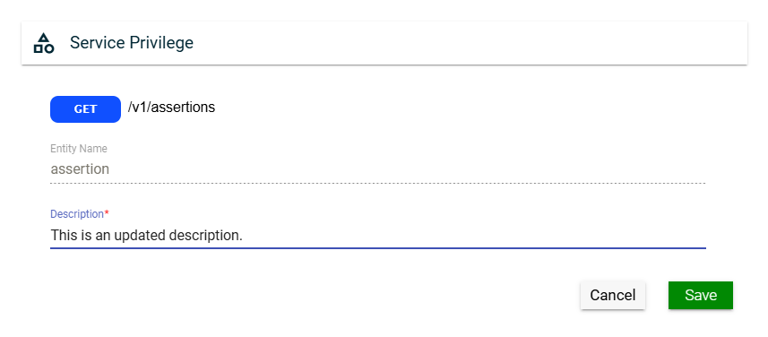 In this section, you can only edit the Entity Name field of an entity and the Description field of a service by clicking the icon next to the item.