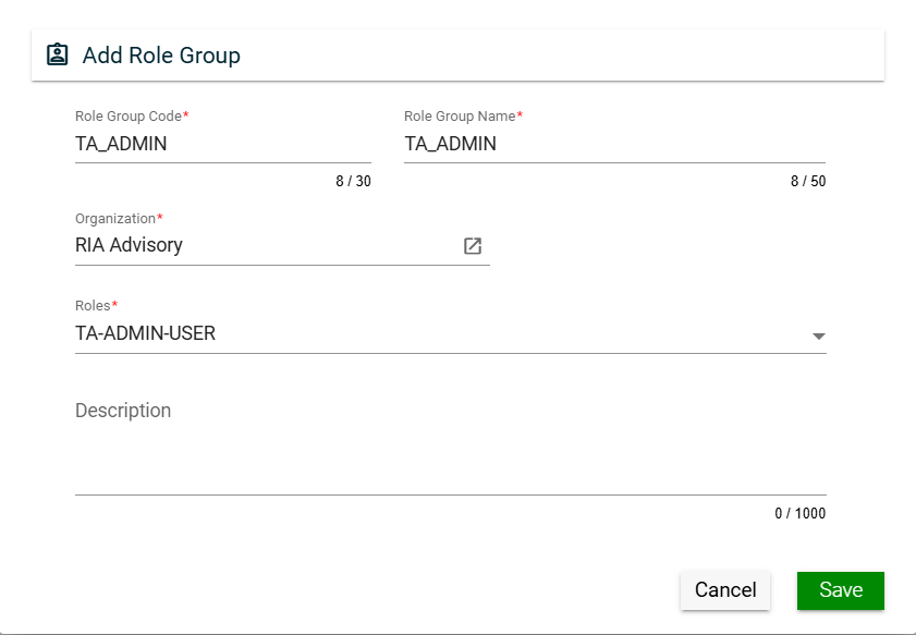Search for an available Role Group. To configure a role group, see Role Group.