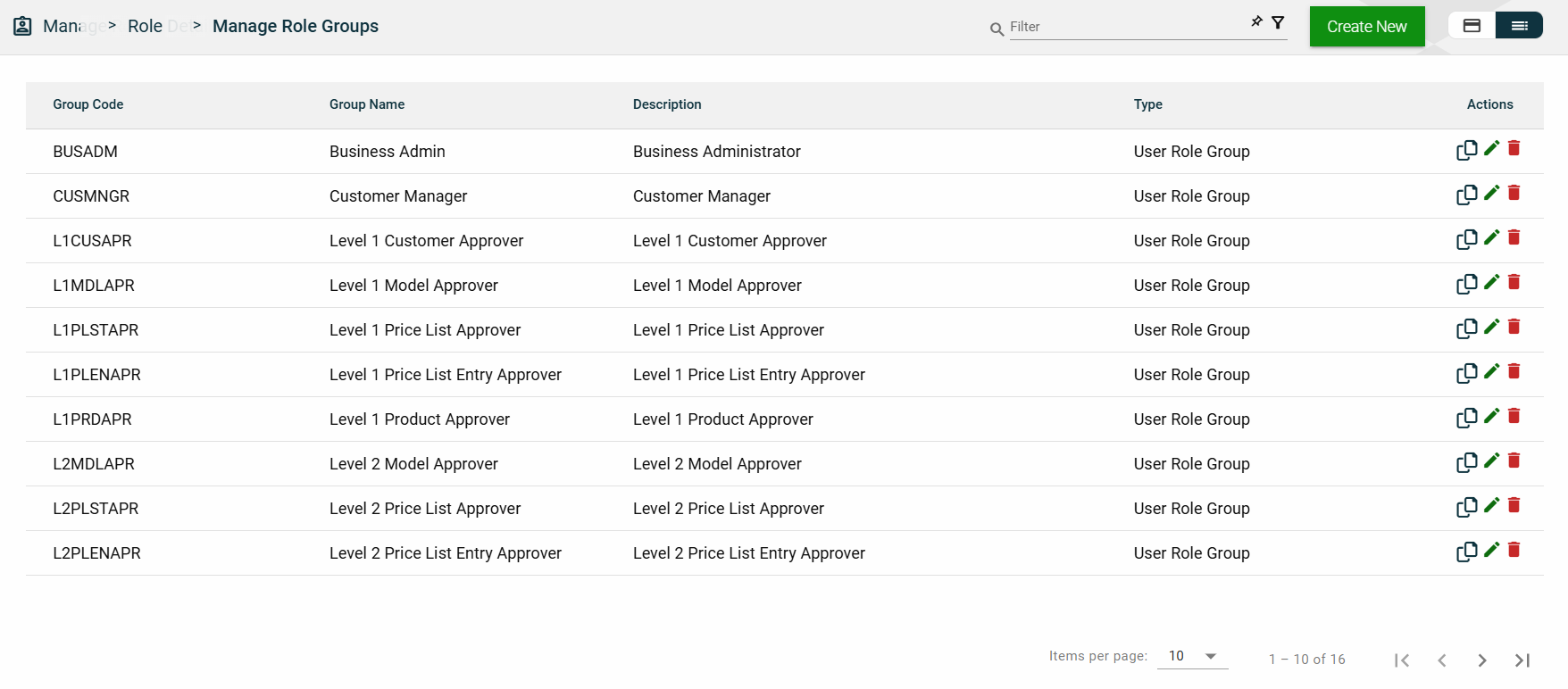 To edit a role group, click and make the necessary changes.