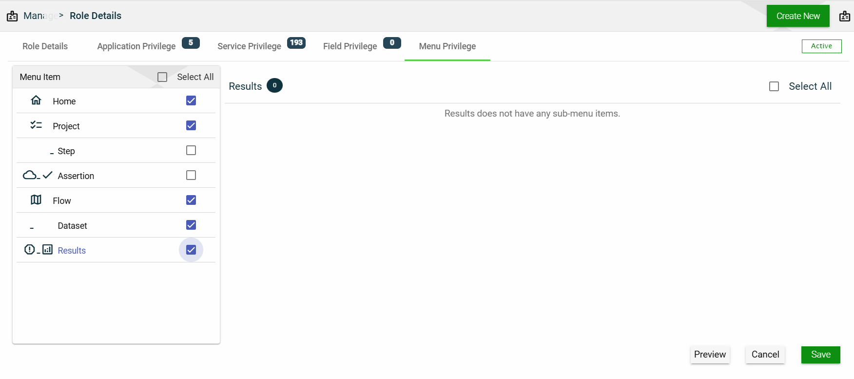 Menu Item Privilege