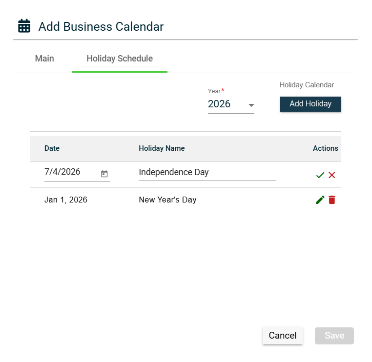 - Enter the holiday name in the Holiday Name field.