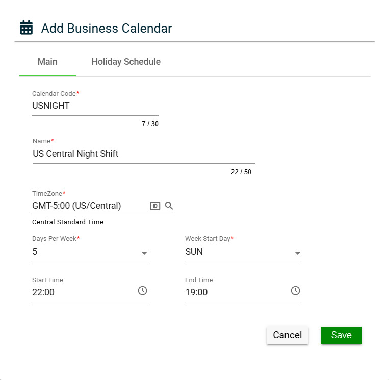 The Business Calendar module enables you to create a calendar that is customized to your business needs. You can personalize the number of workdays or choose a specific day as the work start day. Additionally, you can create a holiday schedule that aligns with your organization’s schedule.