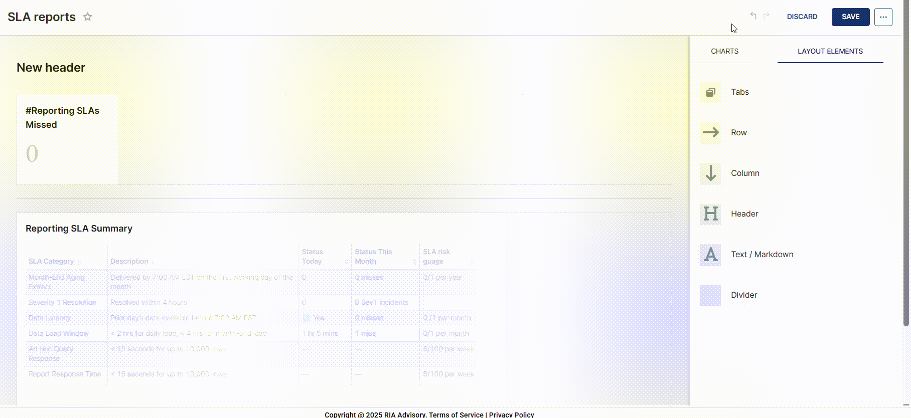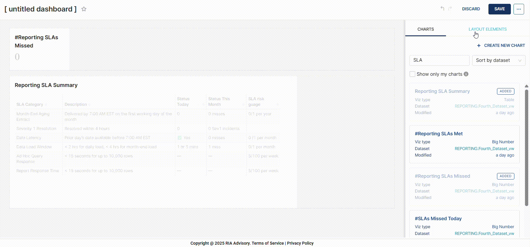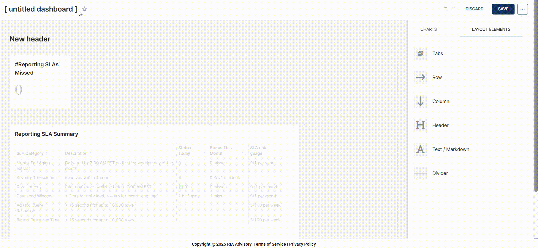 - In the LAYOUT ELEMENTS tab, add layout elements to your dashboard.