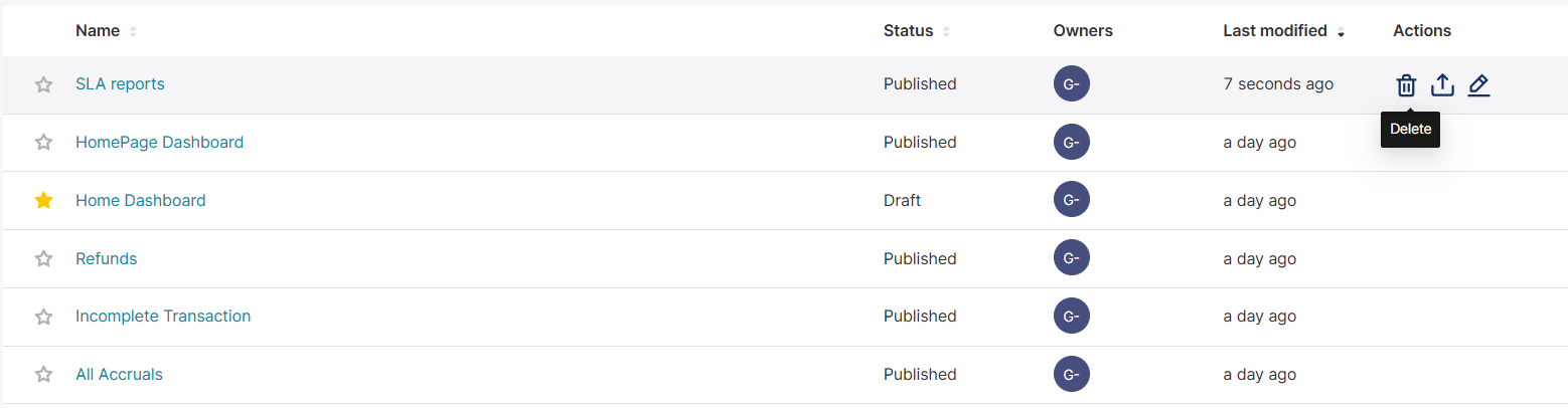To delete a dashboard, follow these steps: