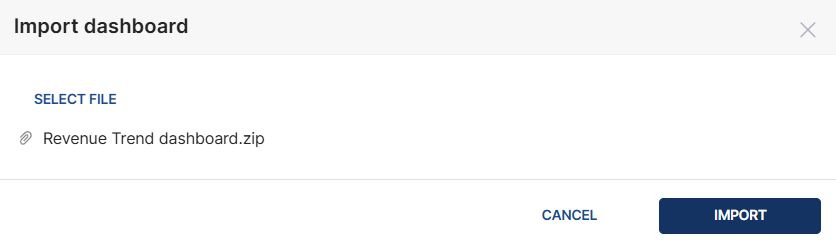 - Click the SELECT FILE link on the Import dashboard popup window.