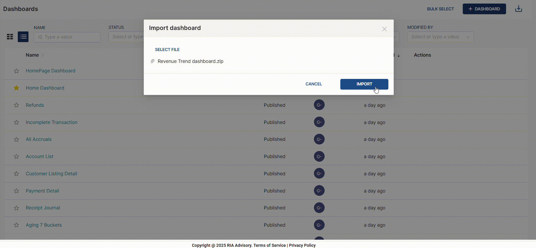 Import a dashboard