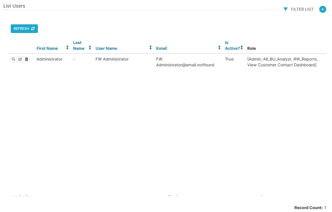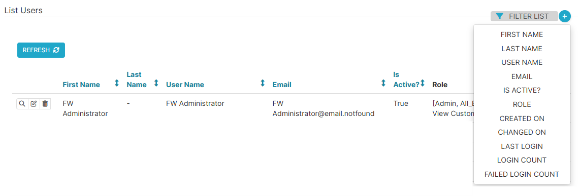 | Filter List | Opens a filter panel to narrow down the list of users based on specific criteria. |