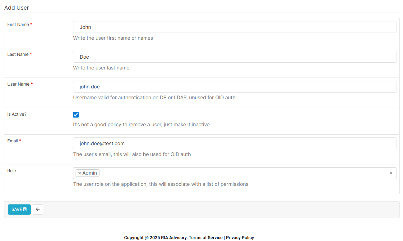 To add a user in this module, follow these steps: